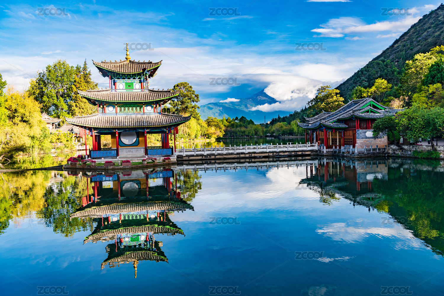 云南,丽江,黑龙潭,湖泊,公园,园林,得月楼,倒影,古建筑,亭子
