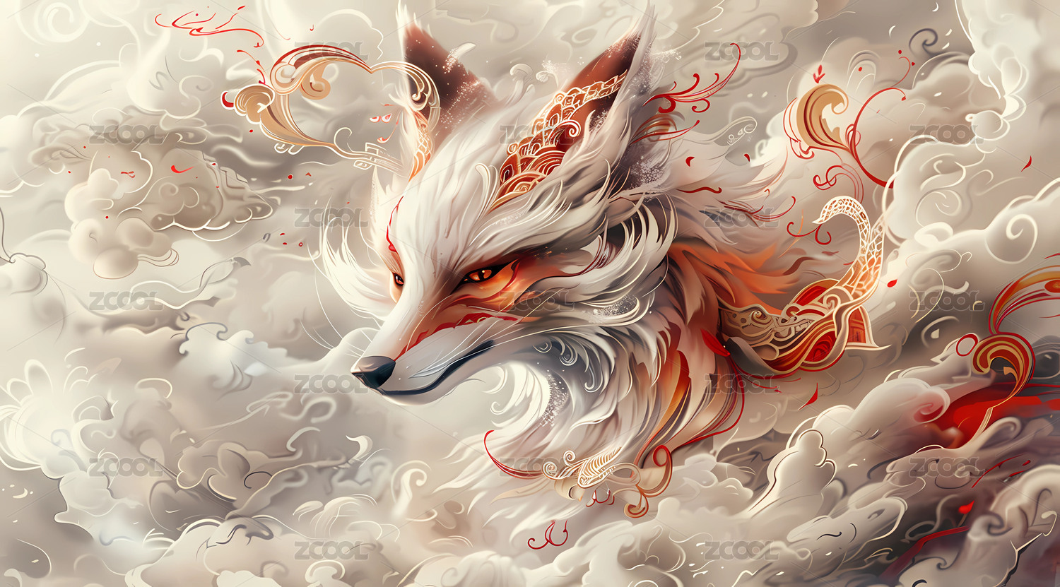狐狸,九尾狐,闪闪发光,迷离,朦胧,电影质感,曝光,刺眼,梦幻,梦境