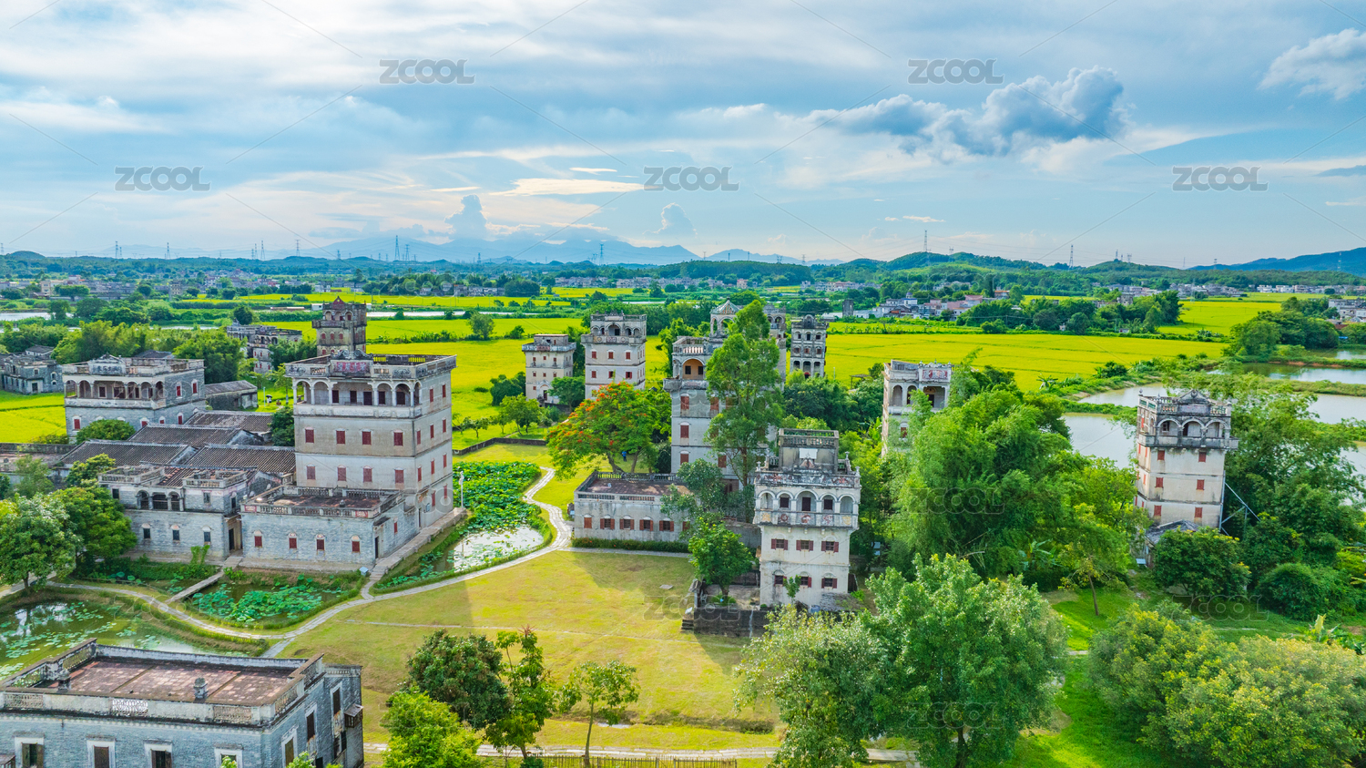 蓝天,晴天,天际线,树,绿色,阳光,侨乡,近现代,村落,乡村