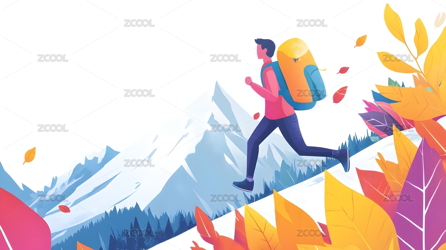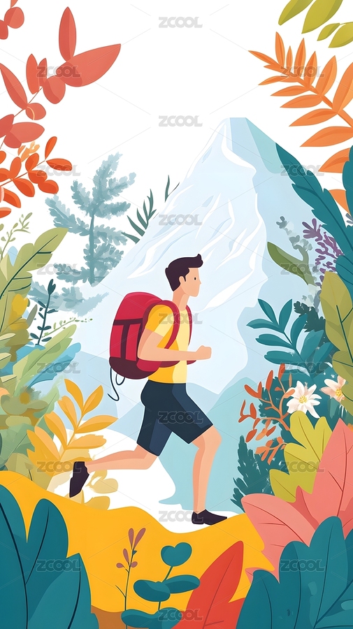 扁平绘卡通徒步人物元素
