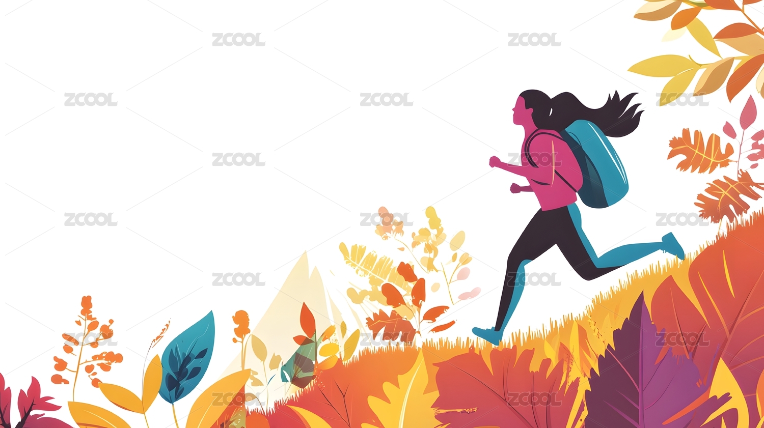 人物在花丛中跑步运动渐变插画