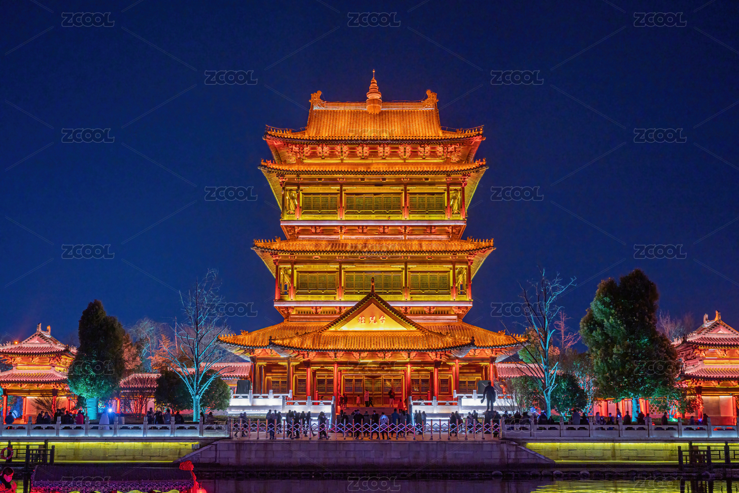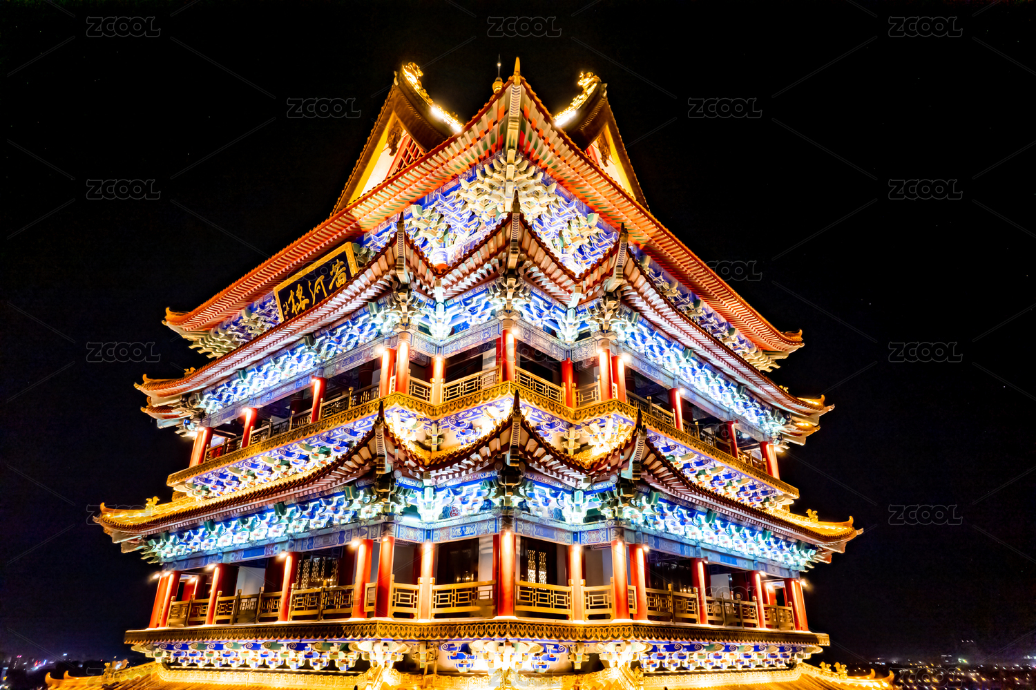 佛山礌岗公园魁星阁中式传统建筑夜景灯光