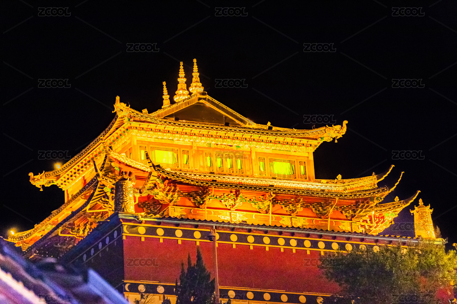 灯光,晚,松赞林寺,香格里拉,楼,夜色,夜景,璀璨,户外