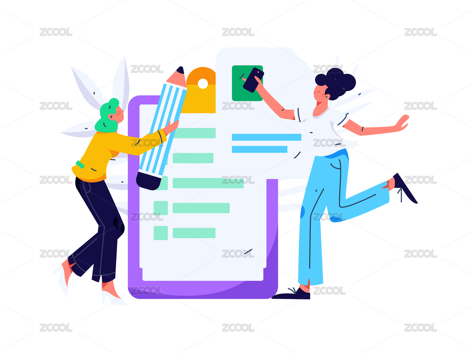 邀请填写问卷调查, 矢量扁平人物场景创意概念插画