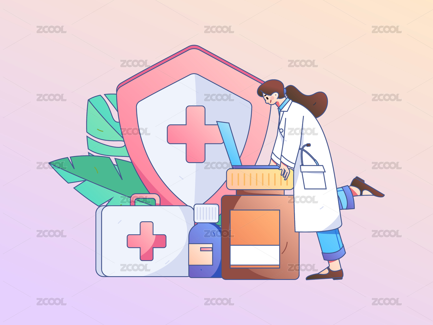 医生体检扁平矢量概念运营插画