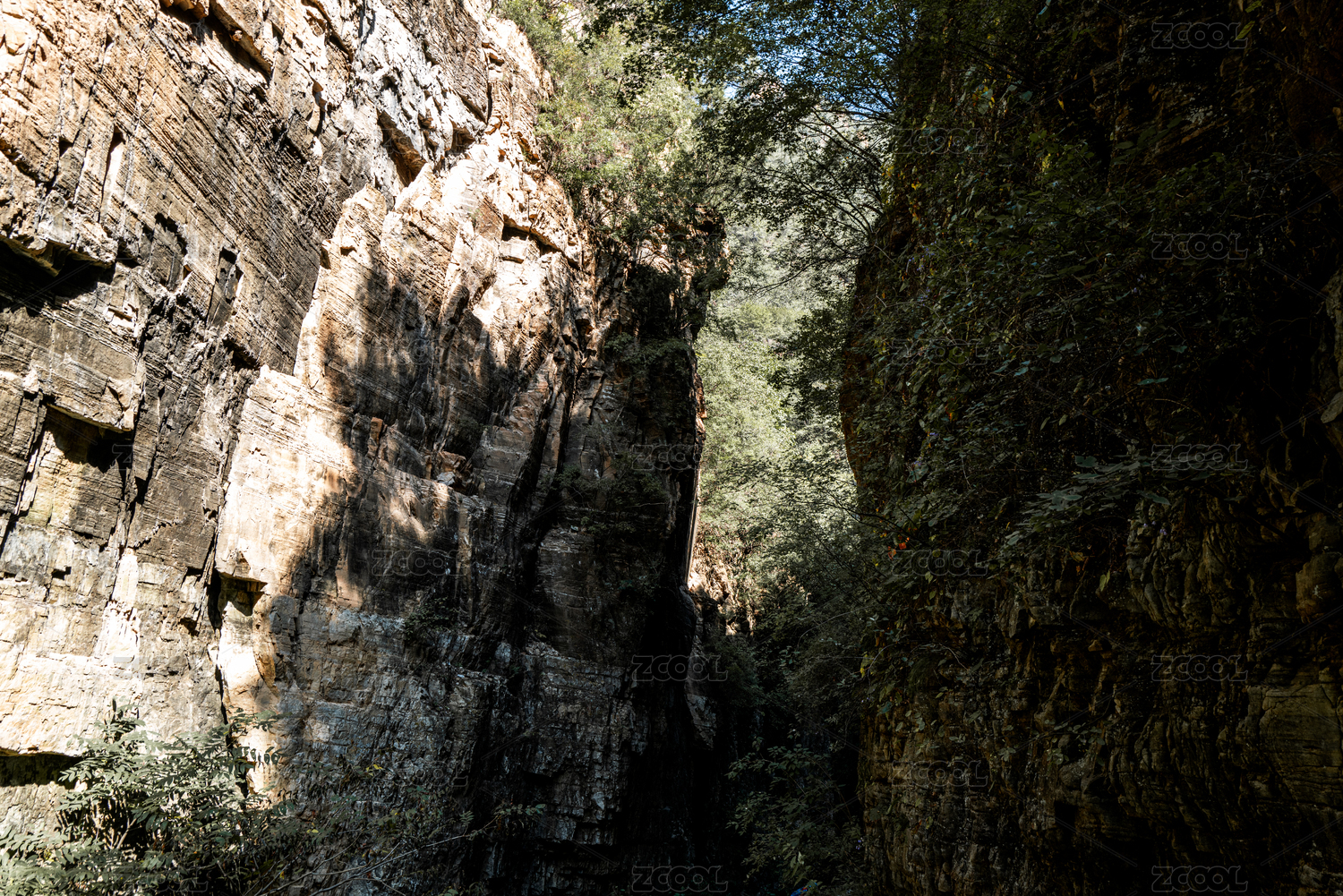 晴天野外山中嶙峋山石石壁怪石自然风光