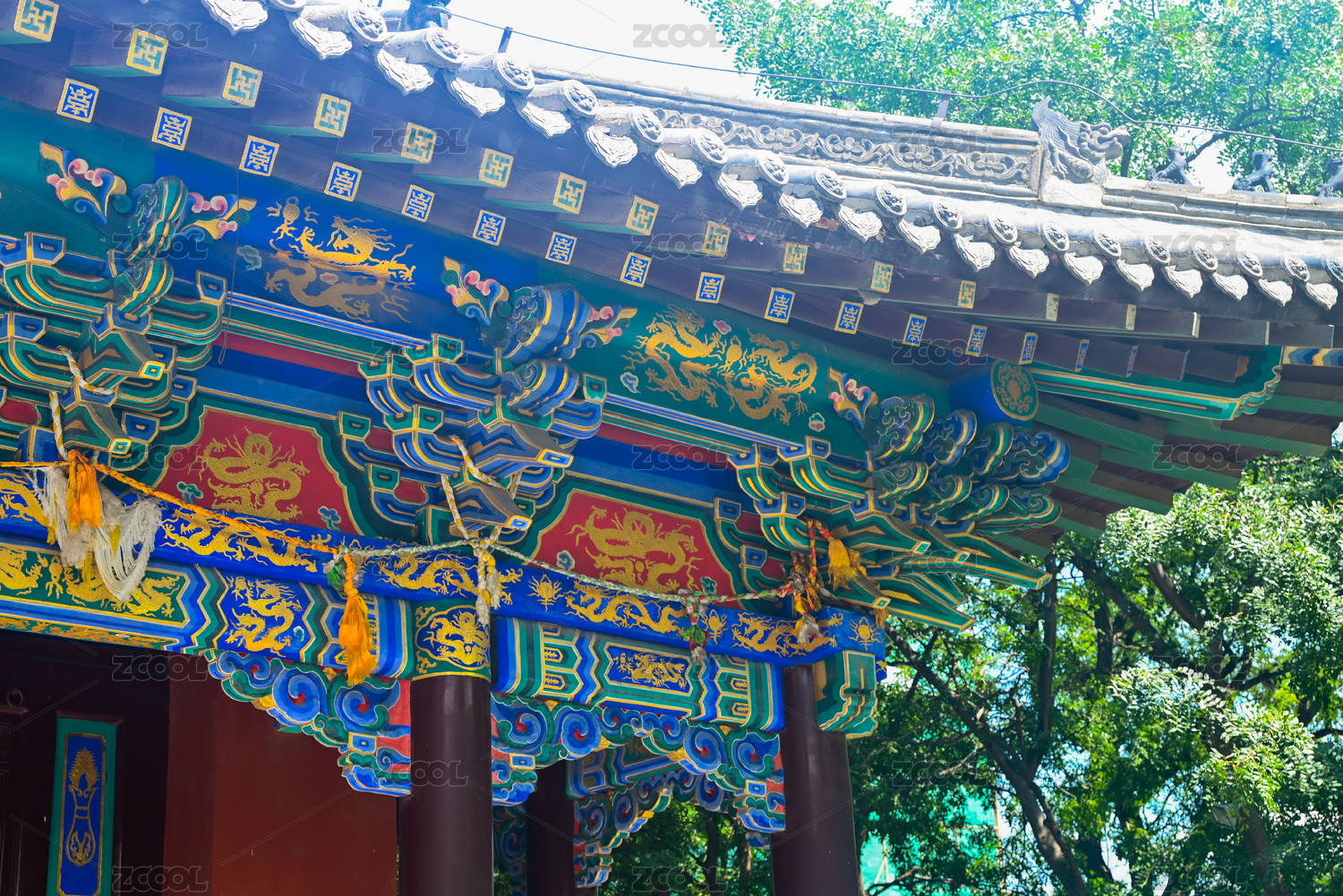 中国山东省济南市趵突泉景区内古建筑彩绘斗角