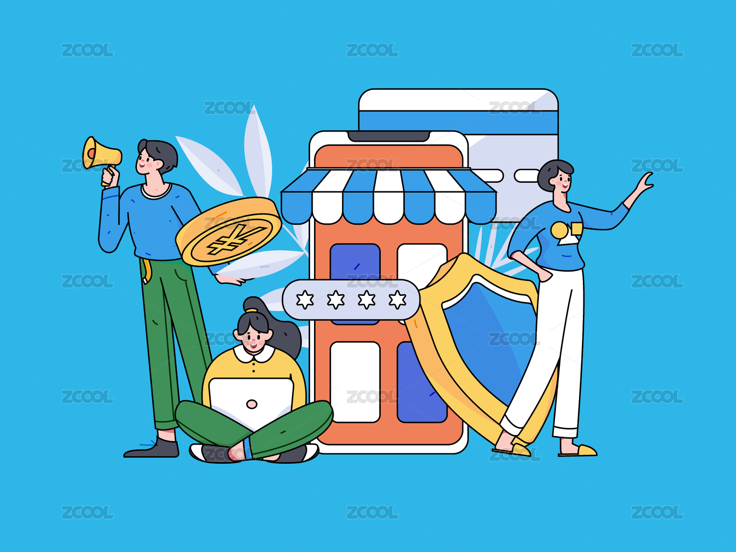 网购电商优惠券概念扁平矢量概念运营手绘插