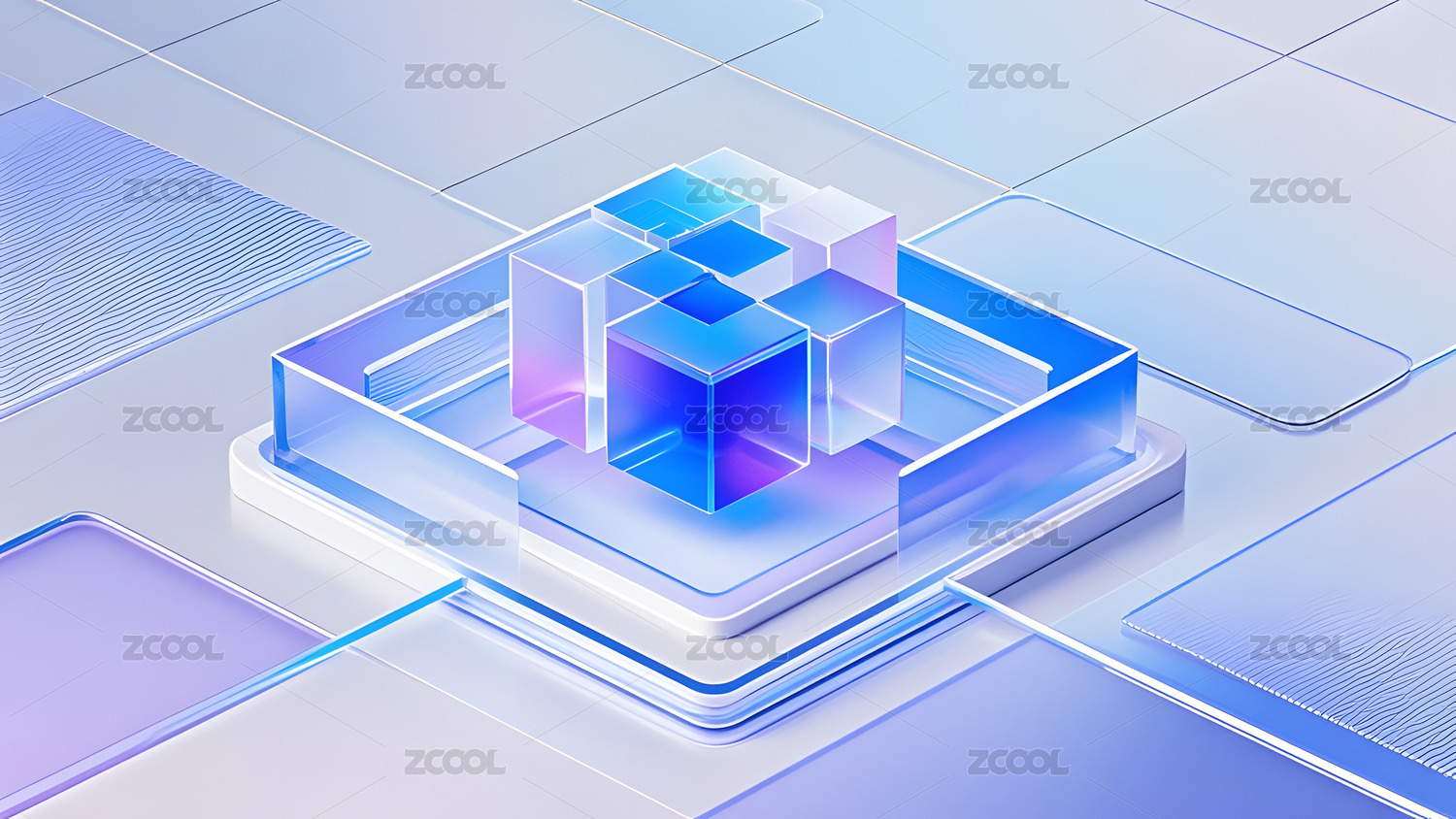 3D卡通透明玻璃蓝橙宝石材质魔方图标