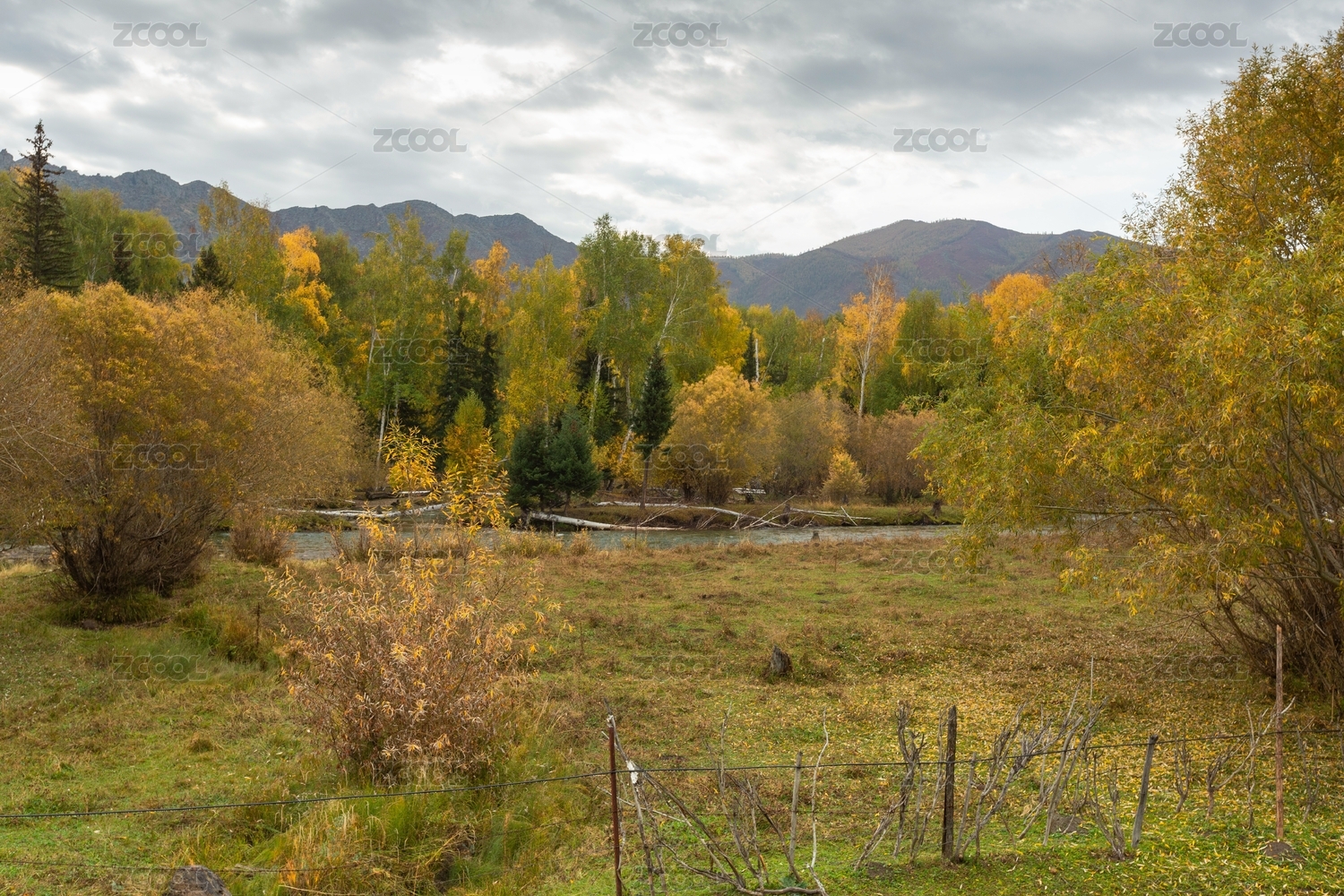 中国新疆博尔塔拉州博乐市夏尔希里自然保护区秋季风光