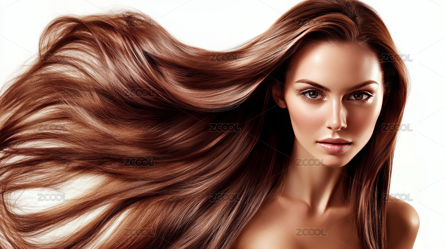 棕色波浪长发美女肖像,展示柔顺飘逸秀发