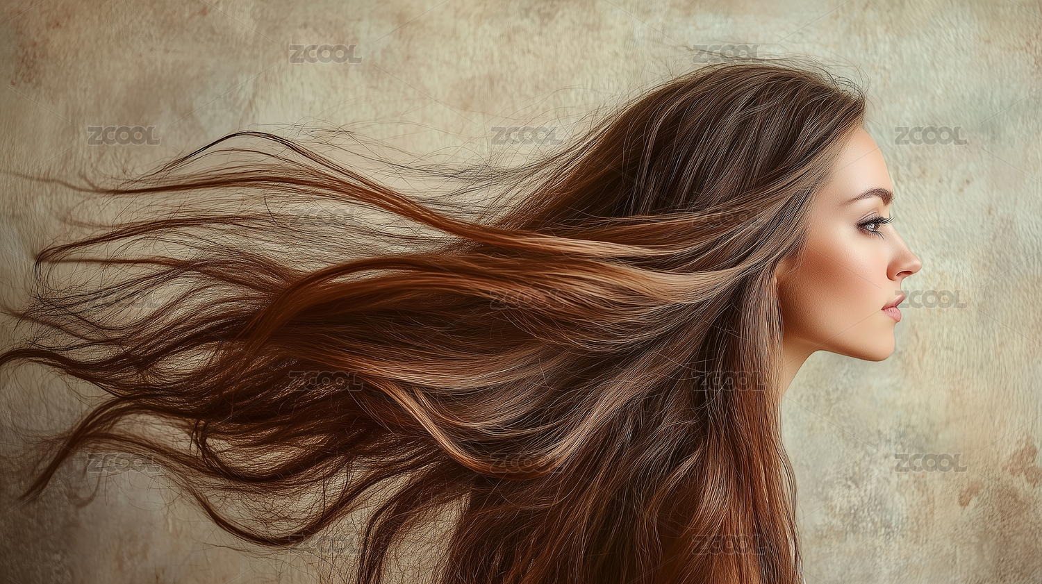长发飞舞的欧美美女模特人物肖像