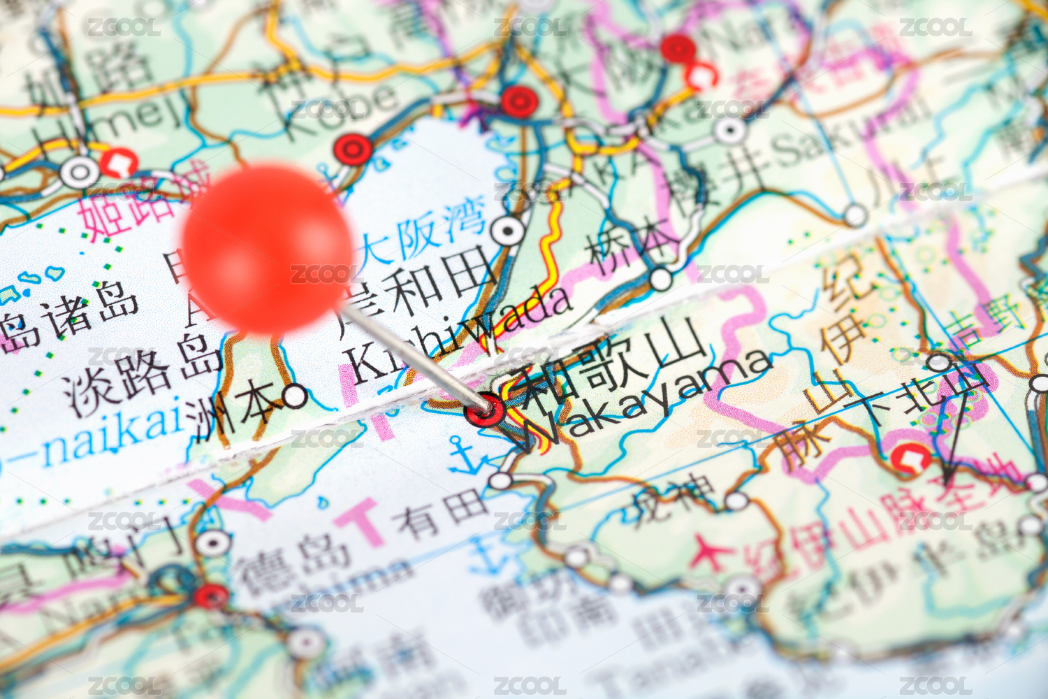 日本城市和歌山在地图上的位置