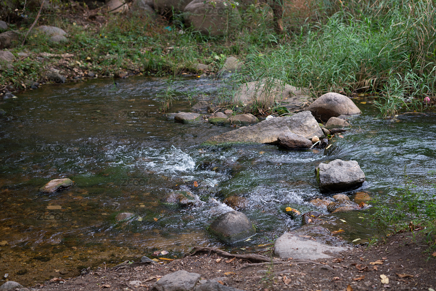 秋季中国北方山区流动的山泉水