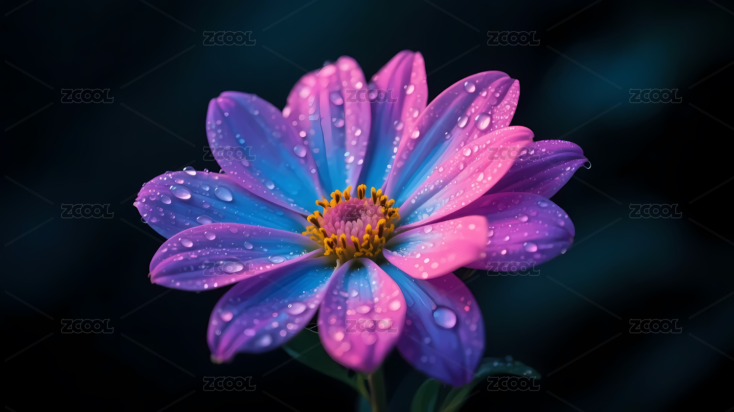 紫蓝相间水珠花朵