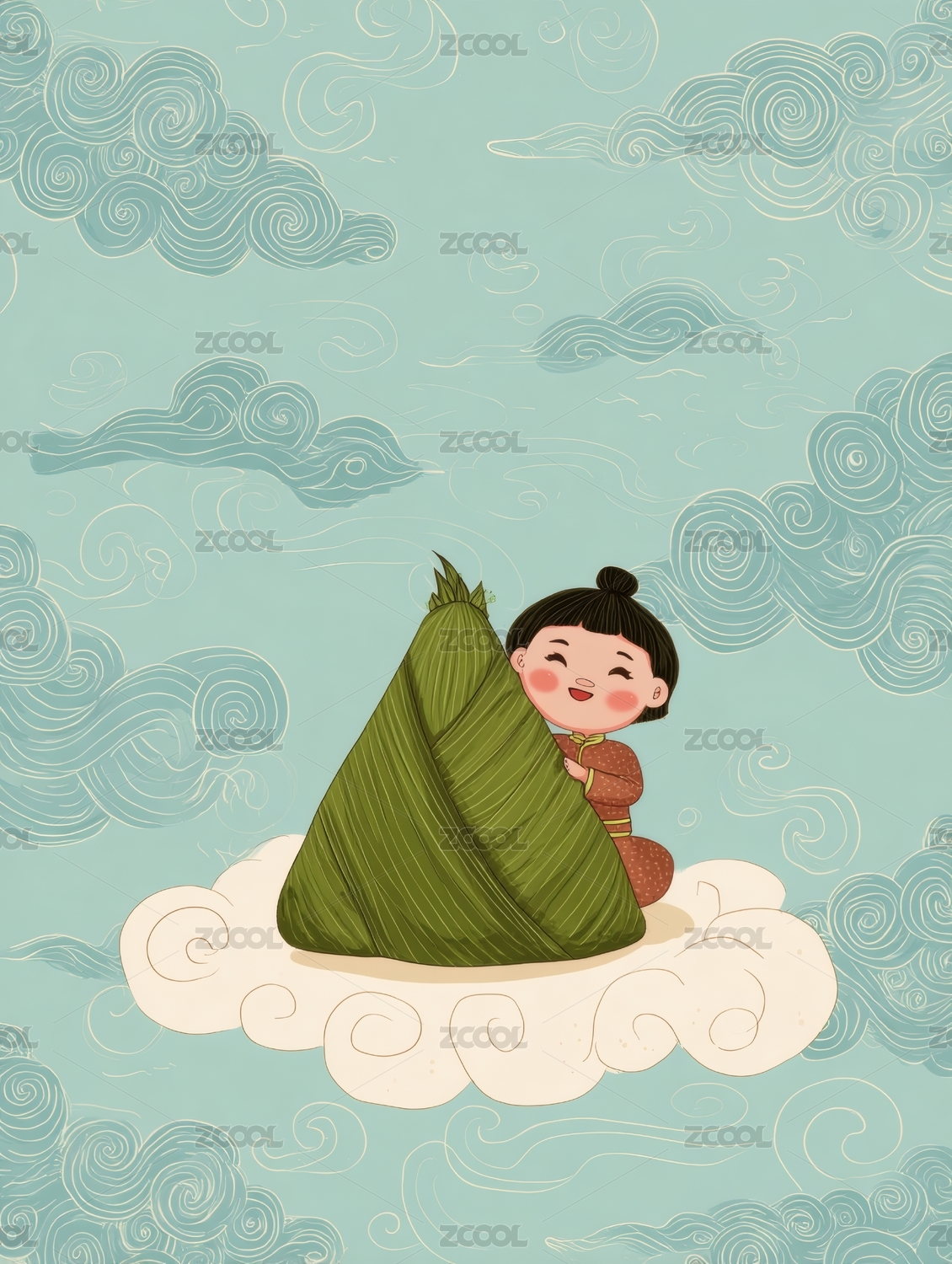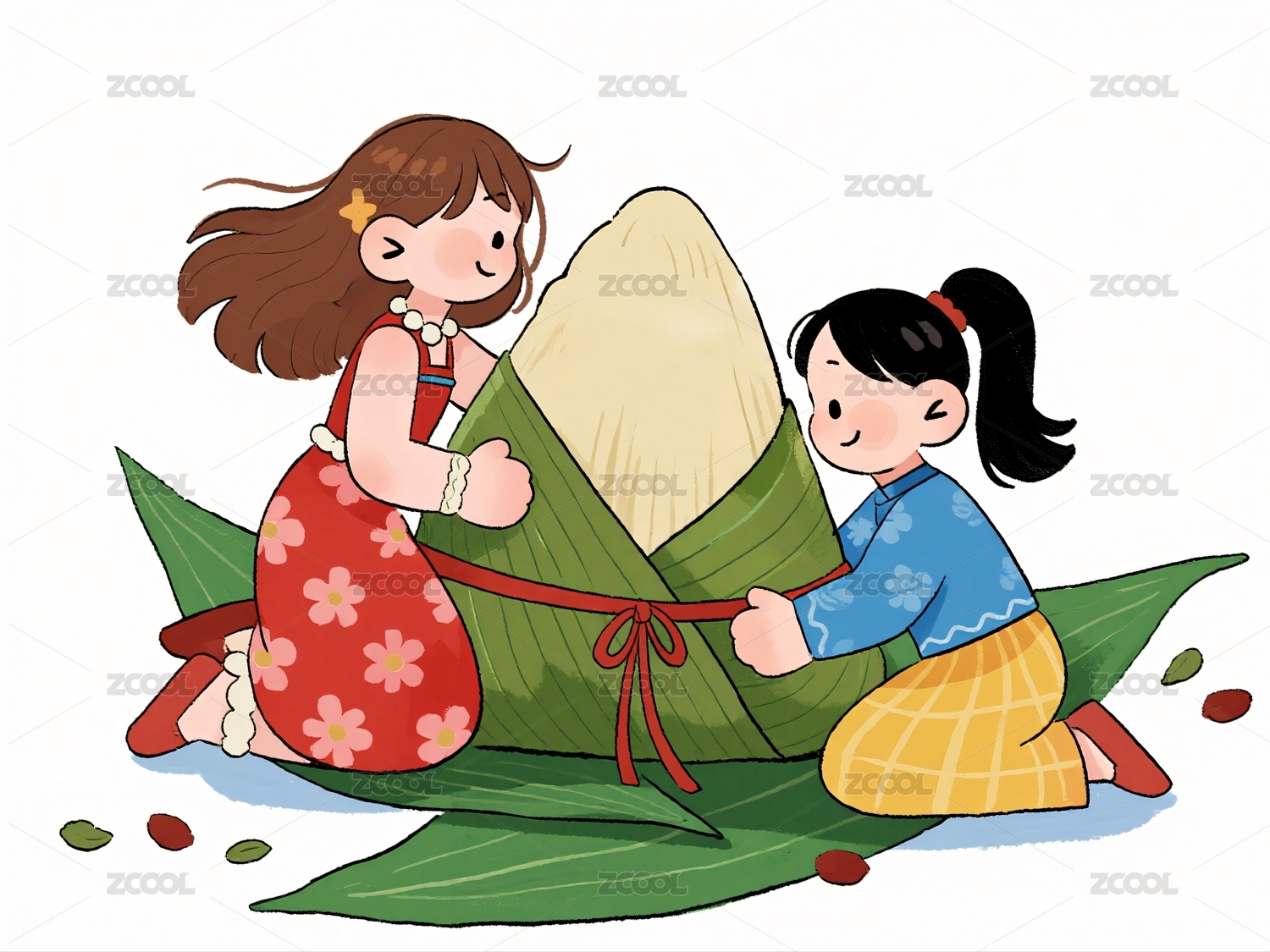 粽子,拟人,娃娃,绿叶,端午节,包裹,传统,节日,假期,包装