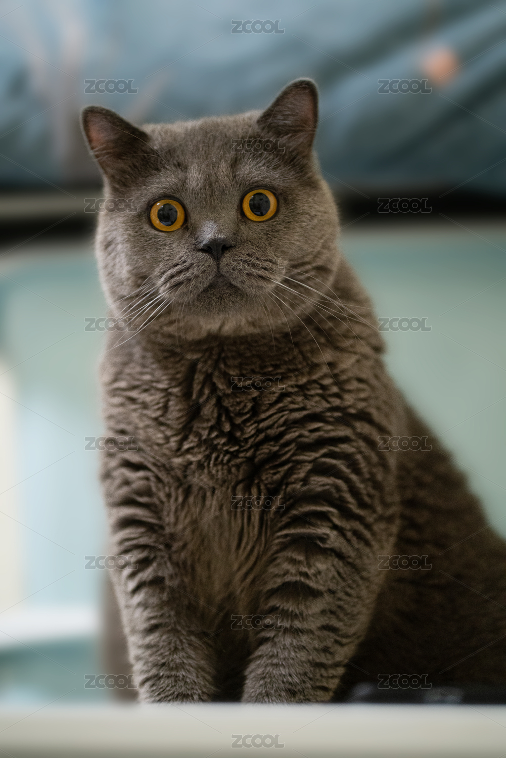 一只可爱的灰蓝色英国短毛宠物猫特写