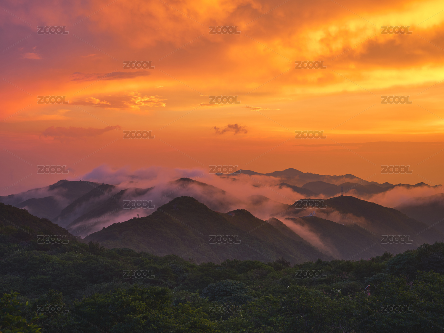 夏季重庆黑山谷旅游区茫茫群山中日落时分的云海