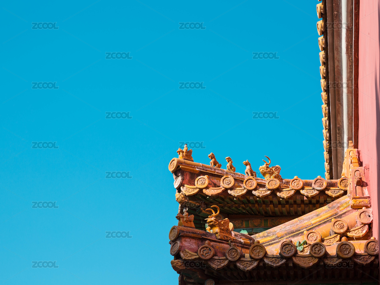 故宫博物院里面的建筑屋檐上的屋脊兽