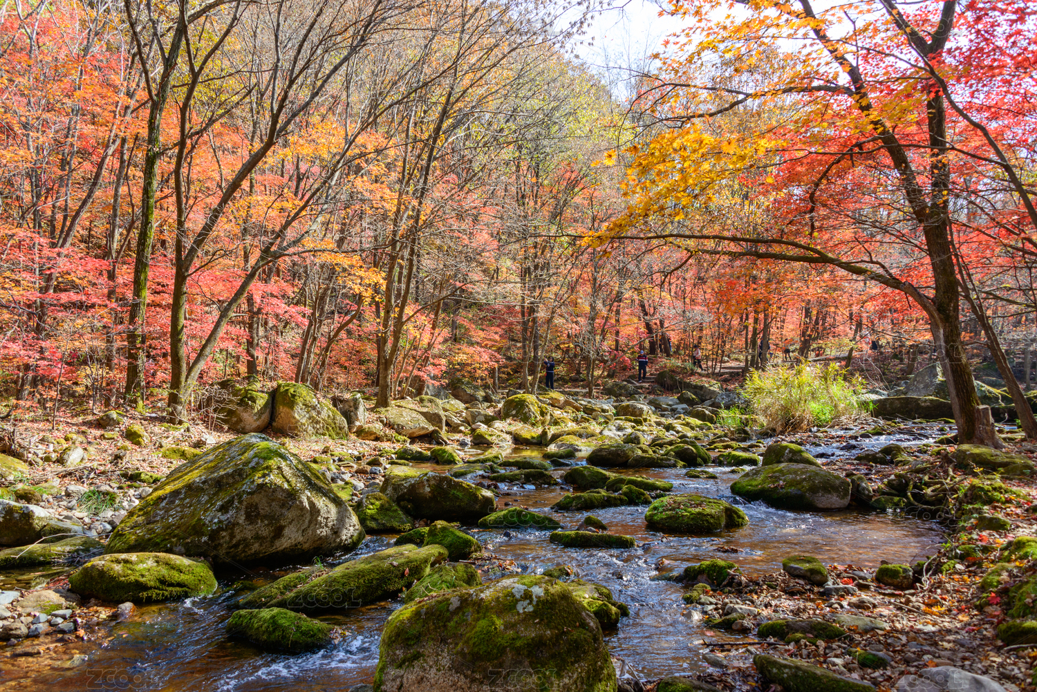 沈阳本溪老边沟,秋季枫树红叶溪流自然风光