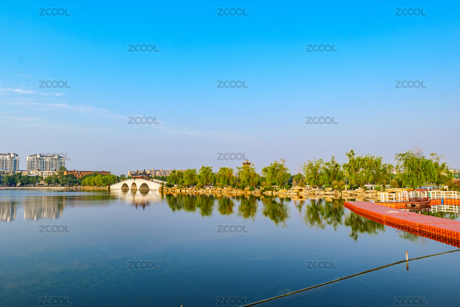 中国河南省商丘市南湖步行栈道护栏装饰建筑