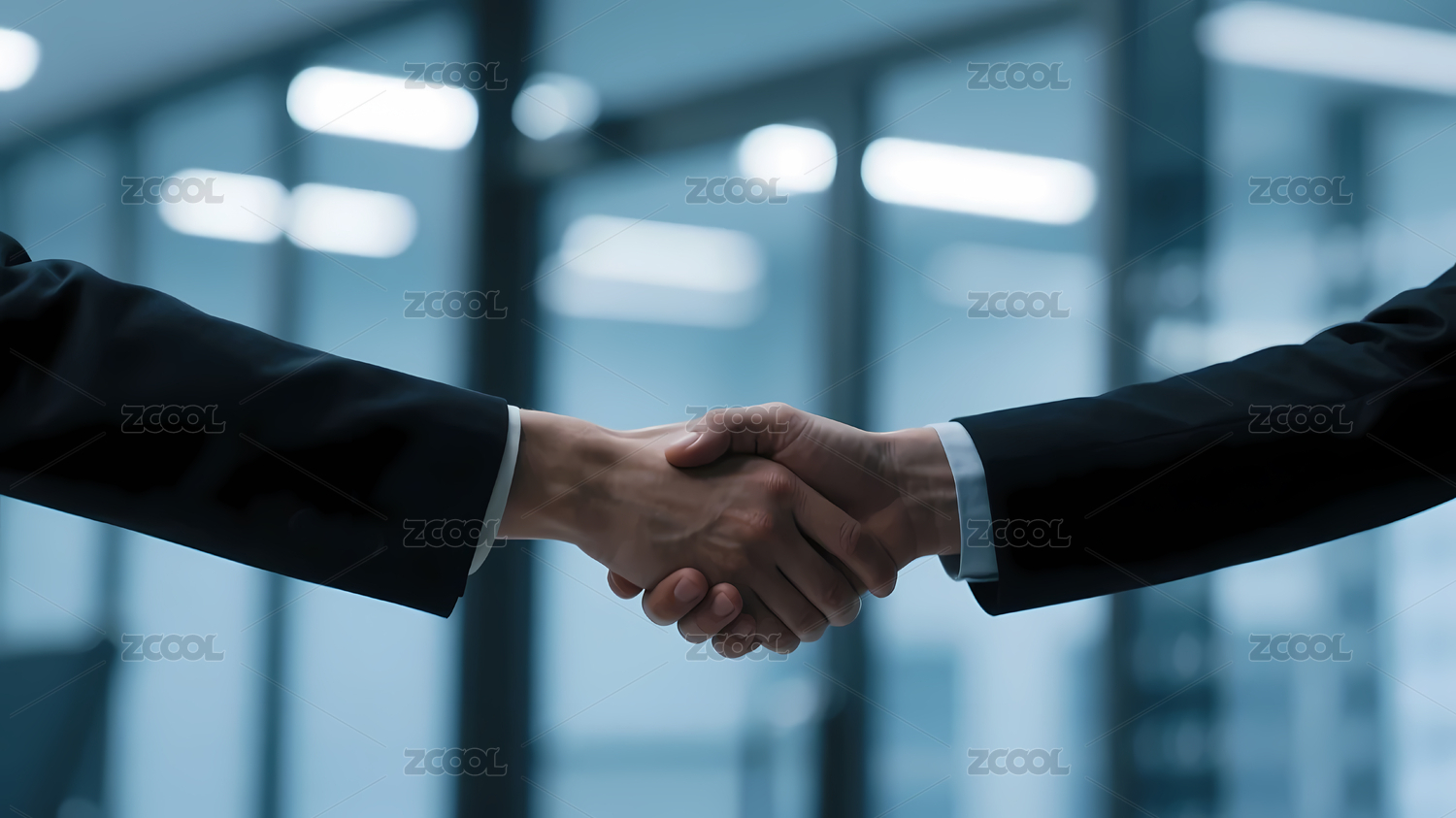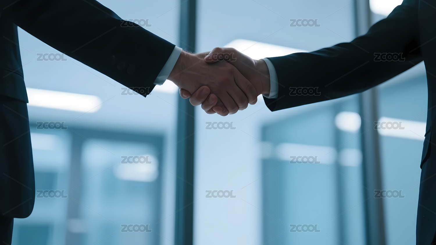 西装男子握手室内场景