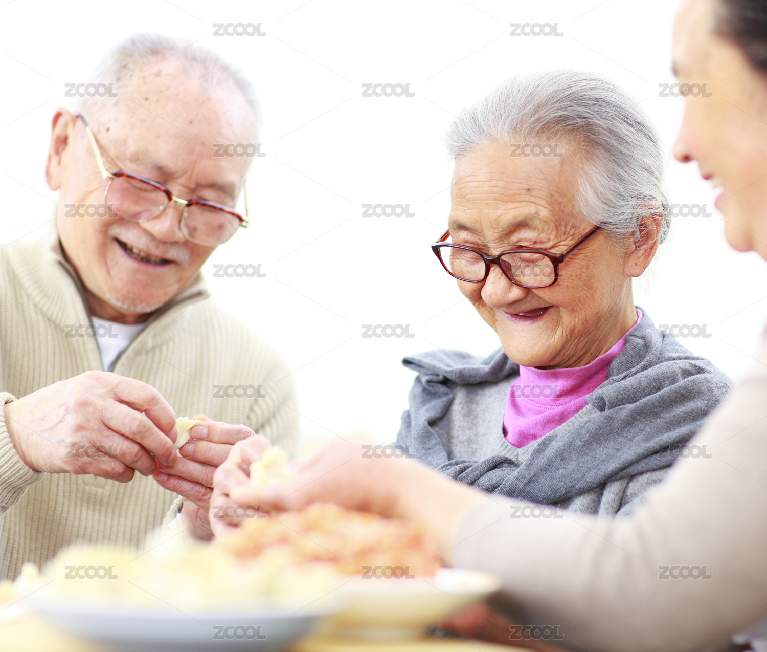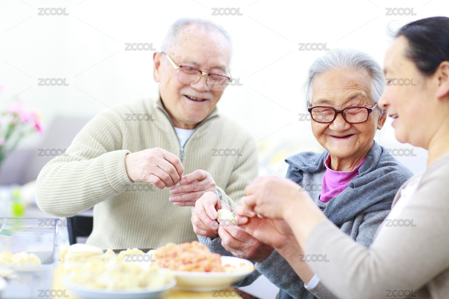 幸福的高级亚洲夫妇制作在中国的家饺子