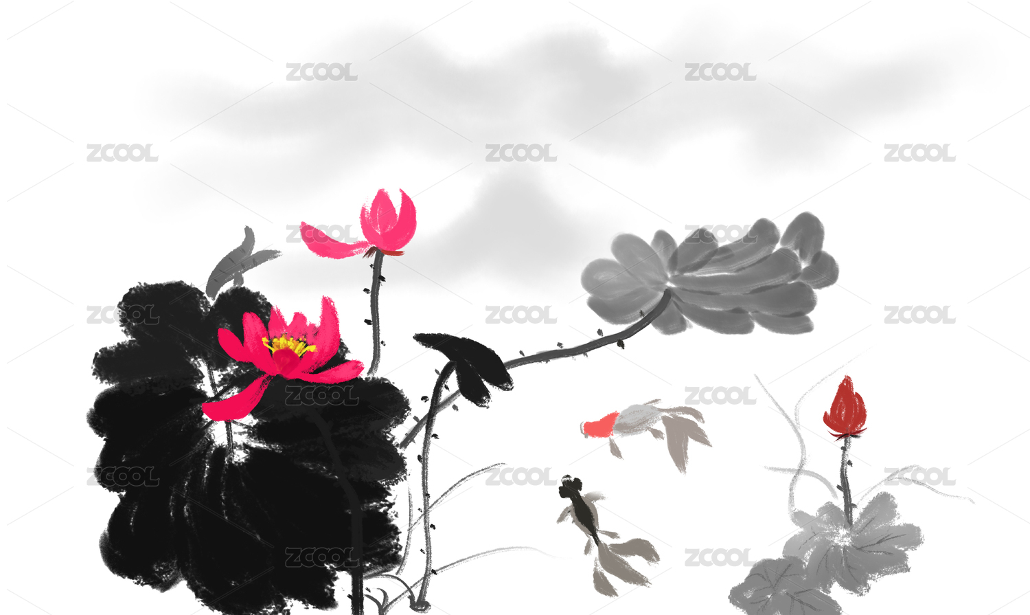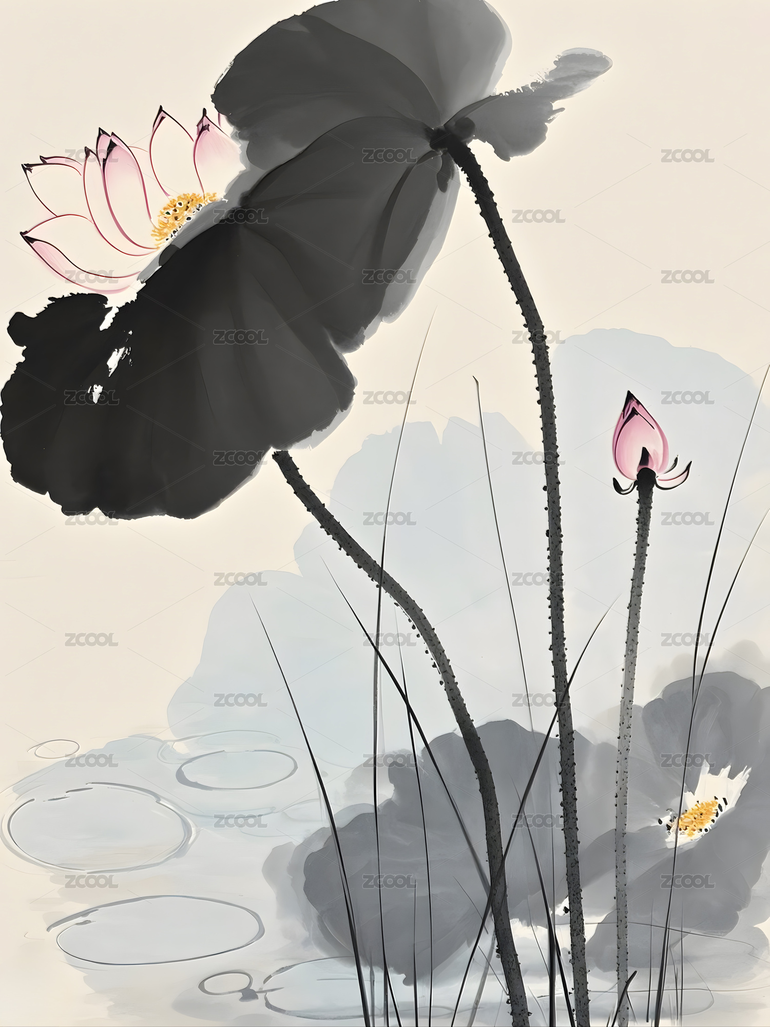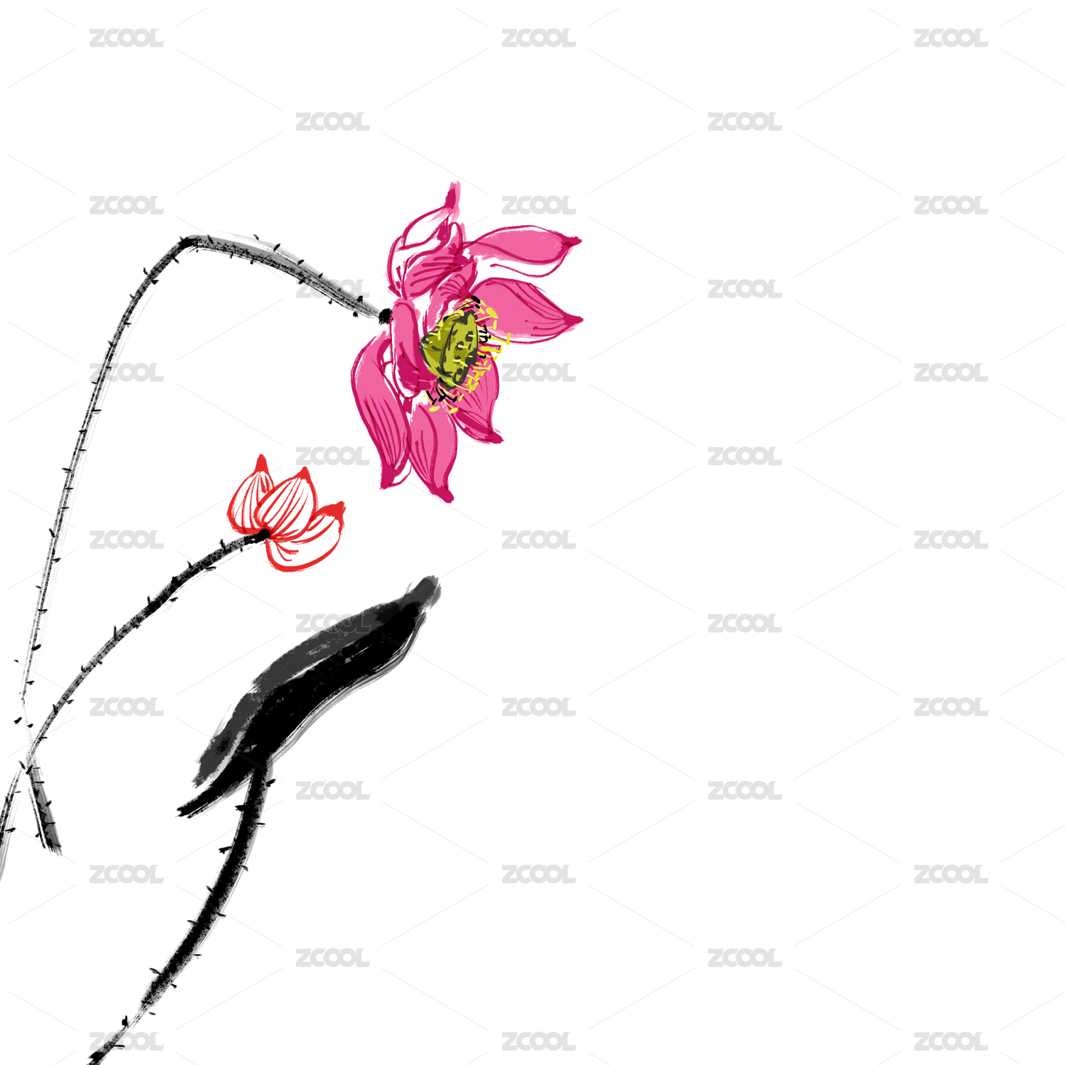 中国,中国文化,中国风,国画,宁静,横幅,水墨画,池塘,荷花,莲花