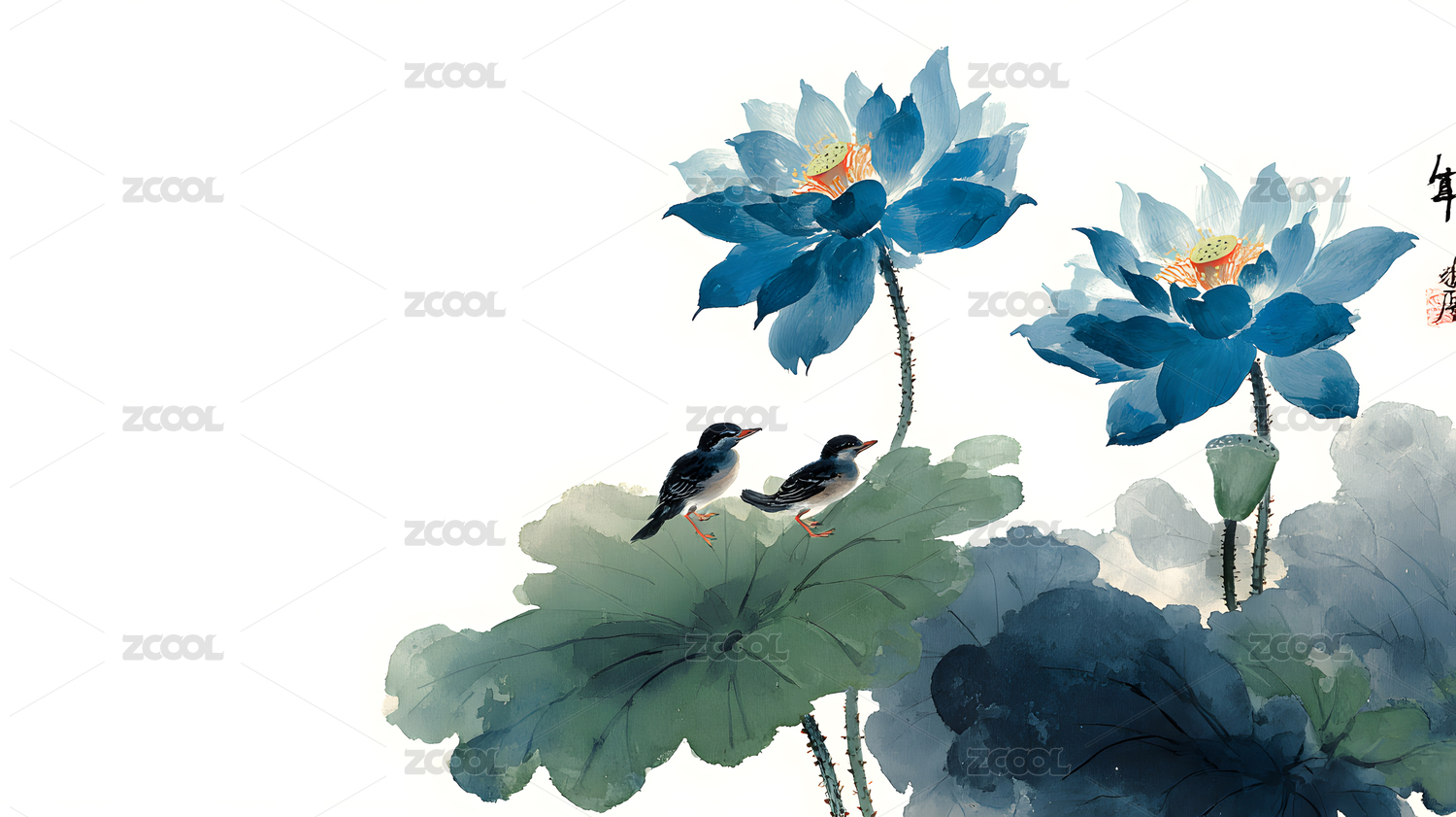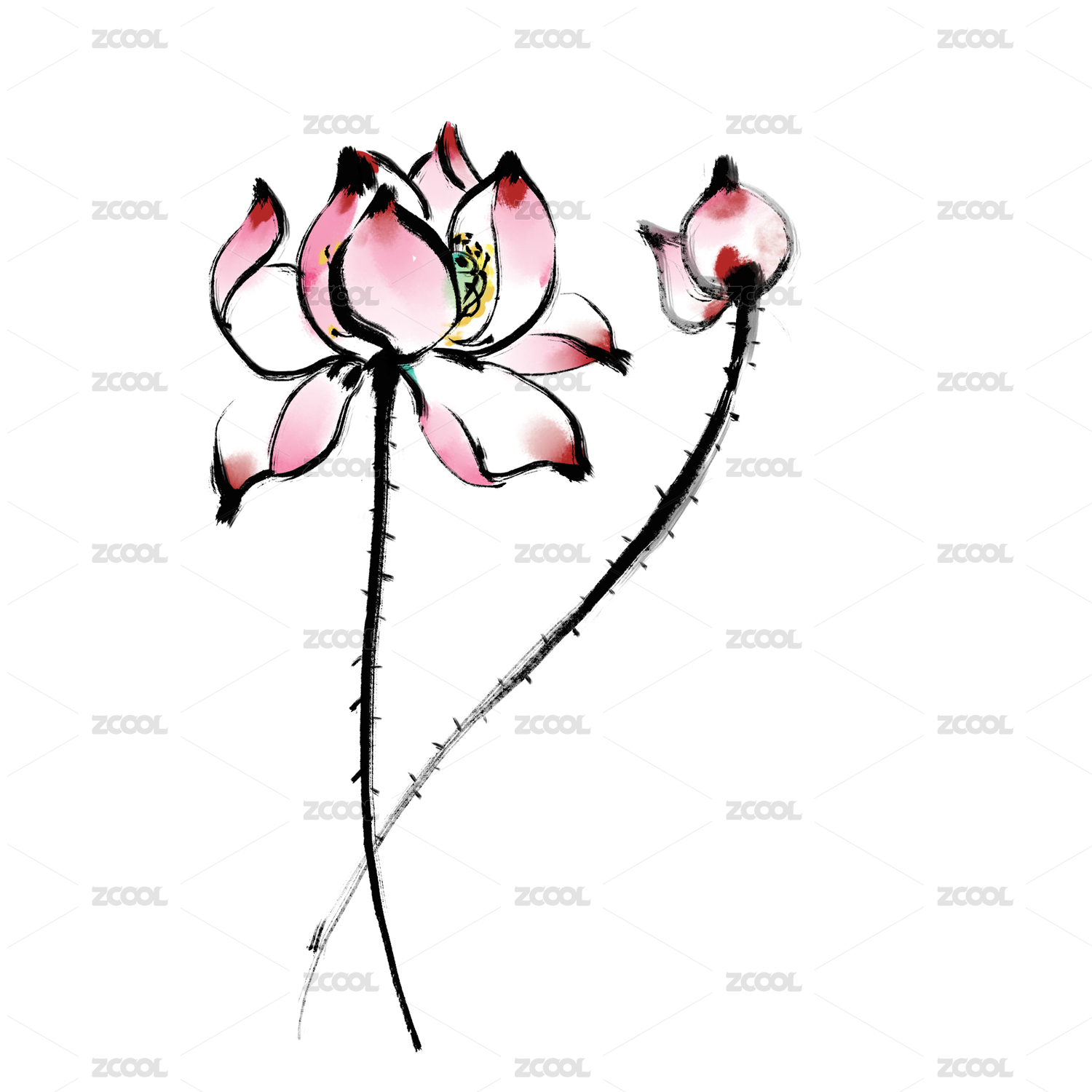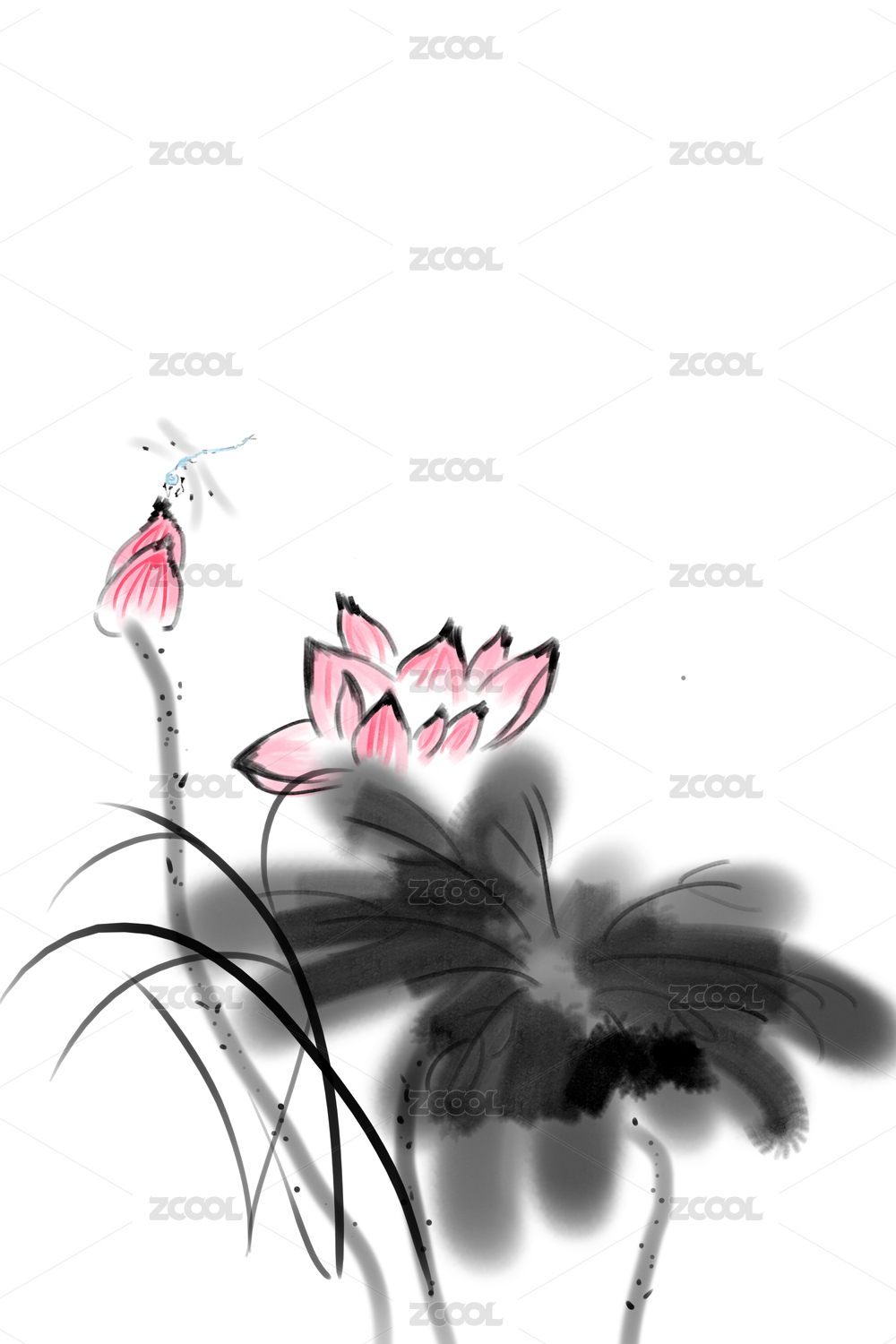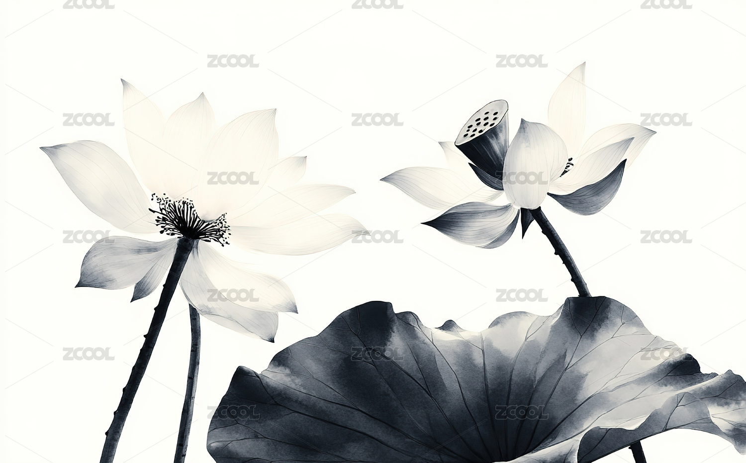中国,中国文化,中国风,国画,宁静,横幅,水墨画,池塘,荷花,莲花