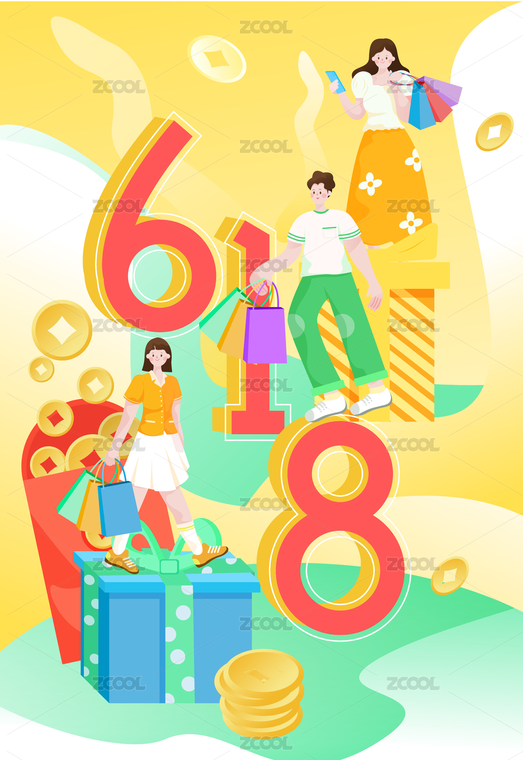 618,购物,海报,人物,喇叭,电商,购物节,网购,商务,电子商务