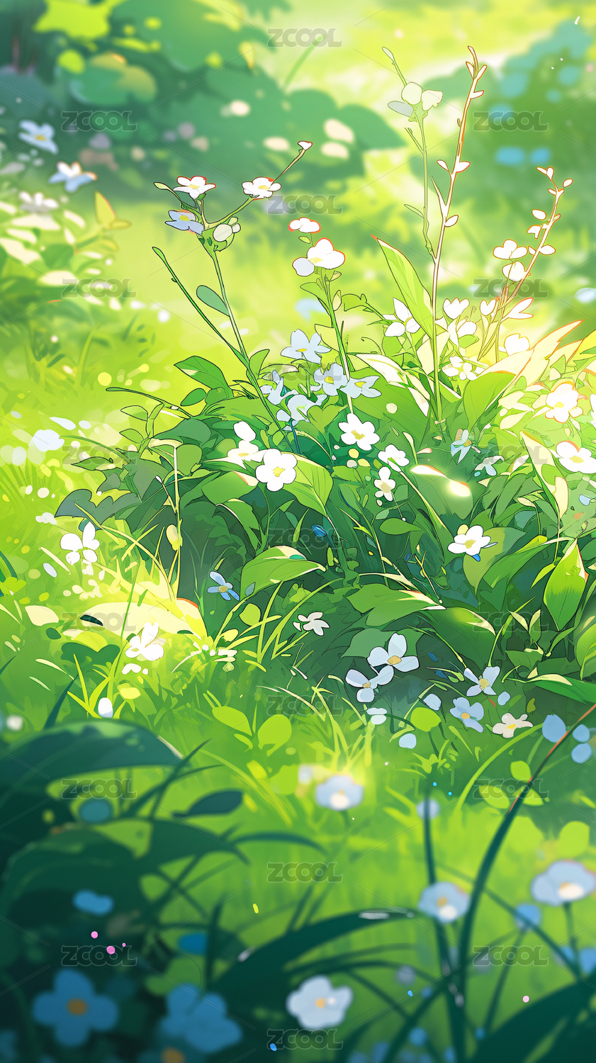 插画,春天,绿色,草地,节气,户外,草坪,天空