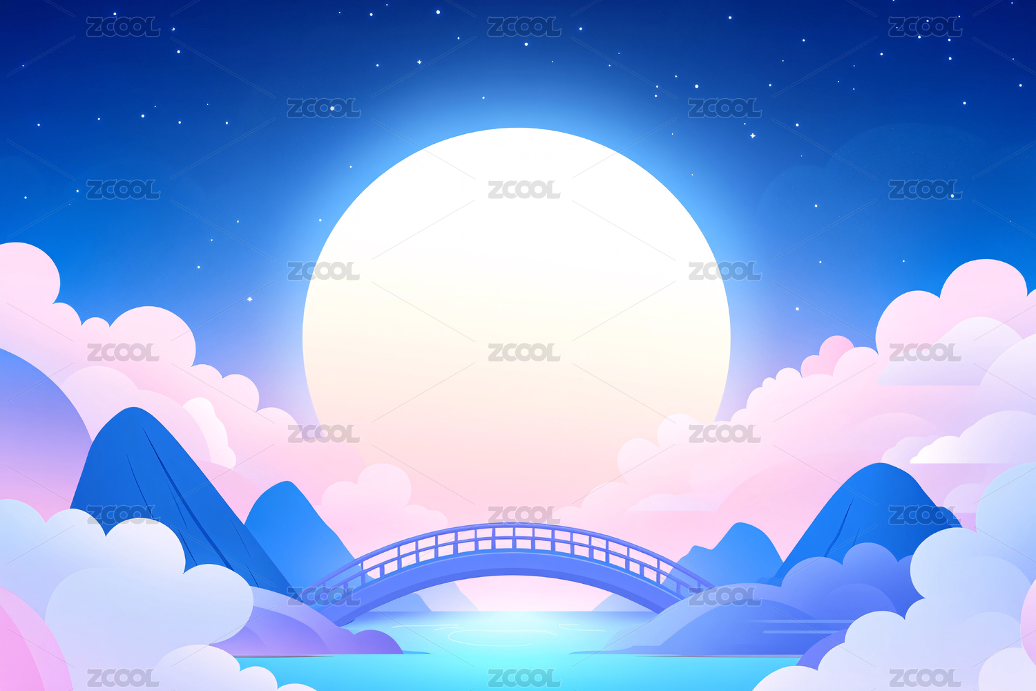 鹊桥,背景,七夕,情人节,中秋节,古建筑,插画,节日,情侣,爱情