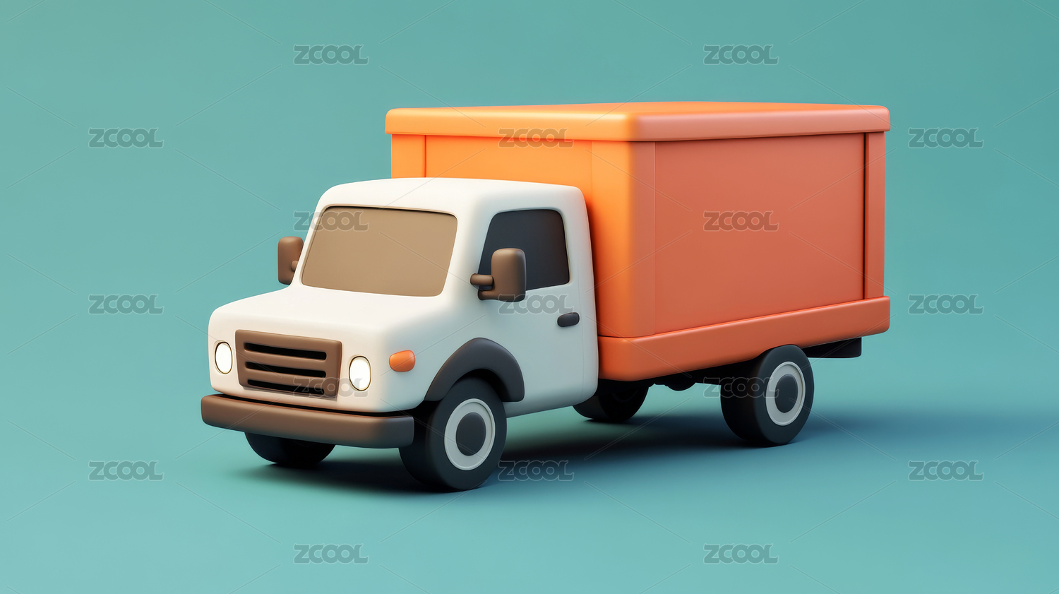 3D卡车货车运输车辆交通驾驶三维渲染插图