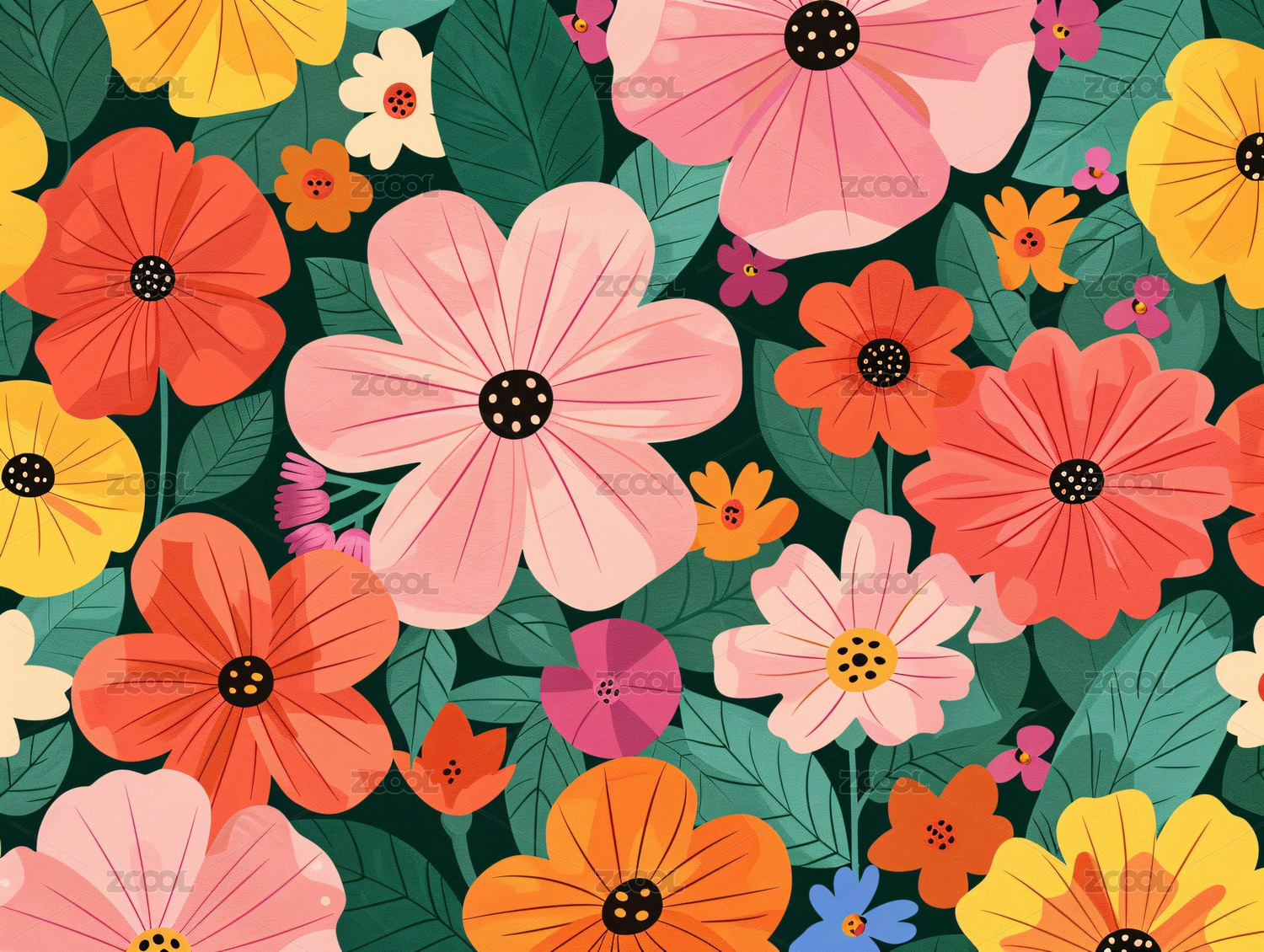 彩色线条花卉重复无缝图案纺织品装饰背景