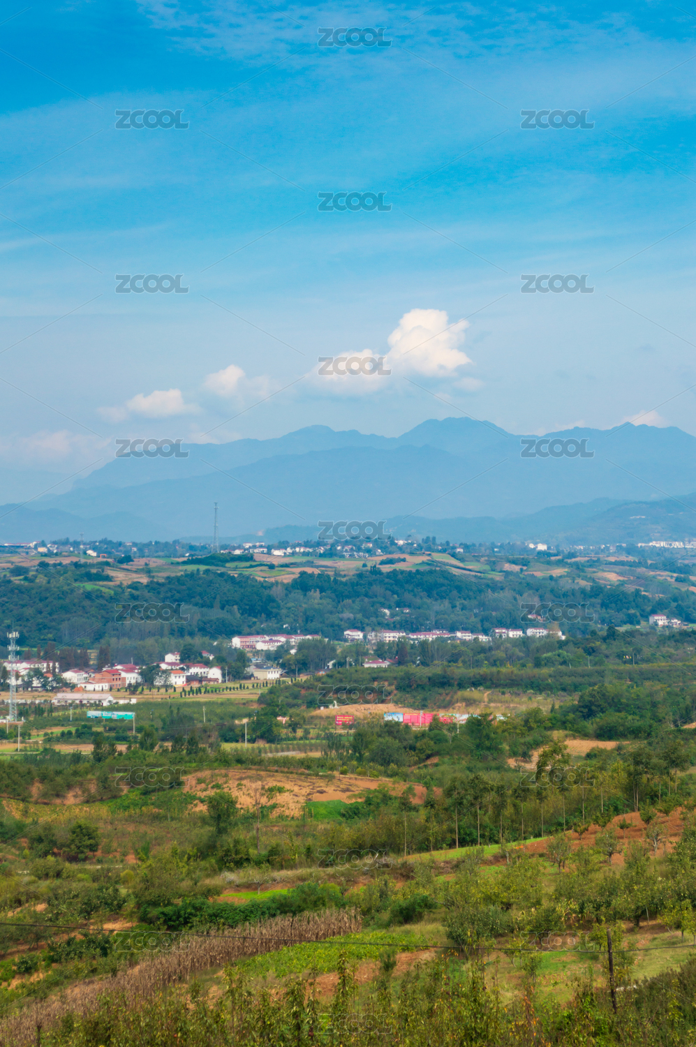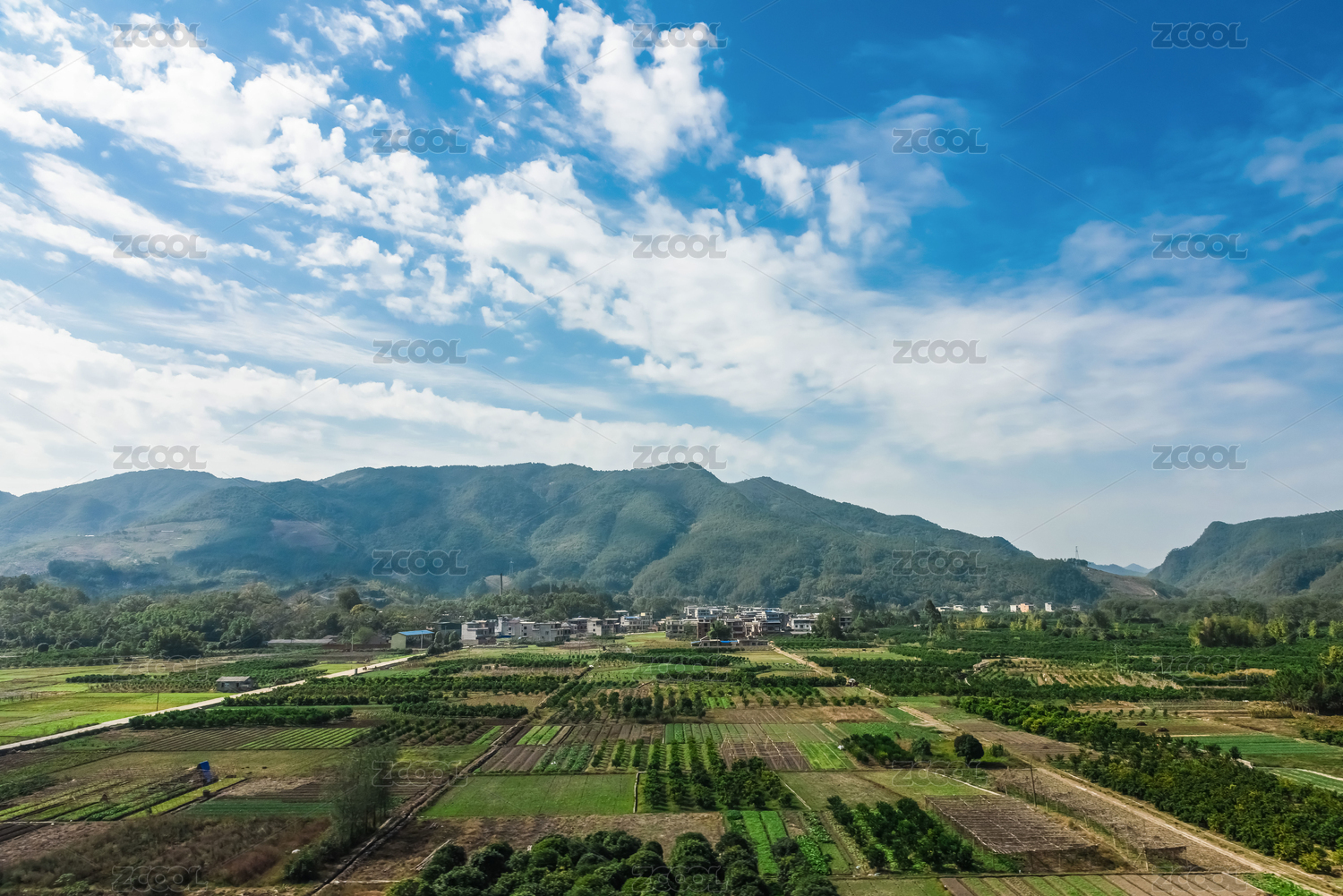 蓝天白云下的村庄