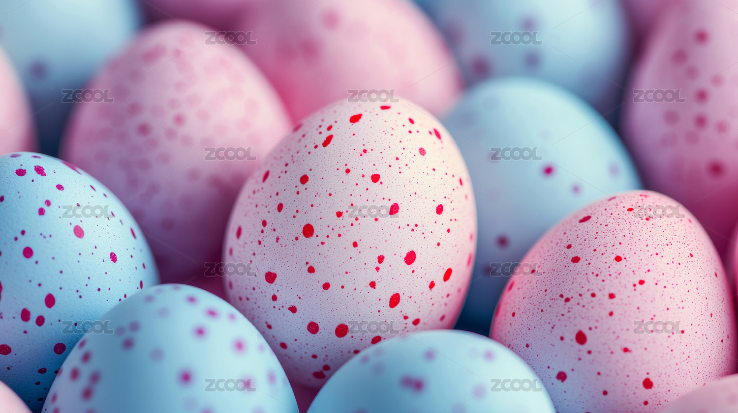 蓝色背景上彩色复活节彩蛋的特写镜头