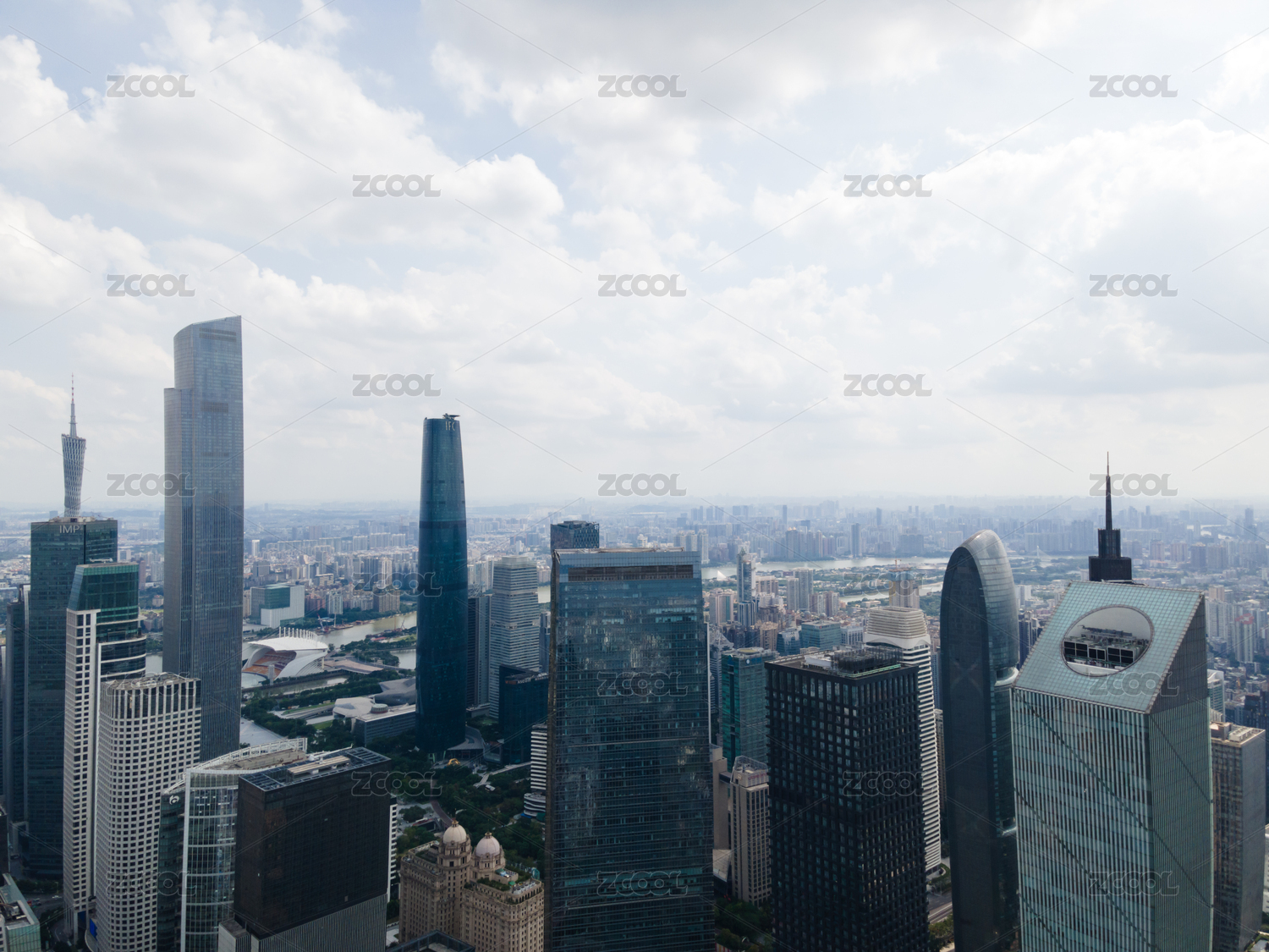 白昼晴天航拍广州琶洲CBD鸟瞰图