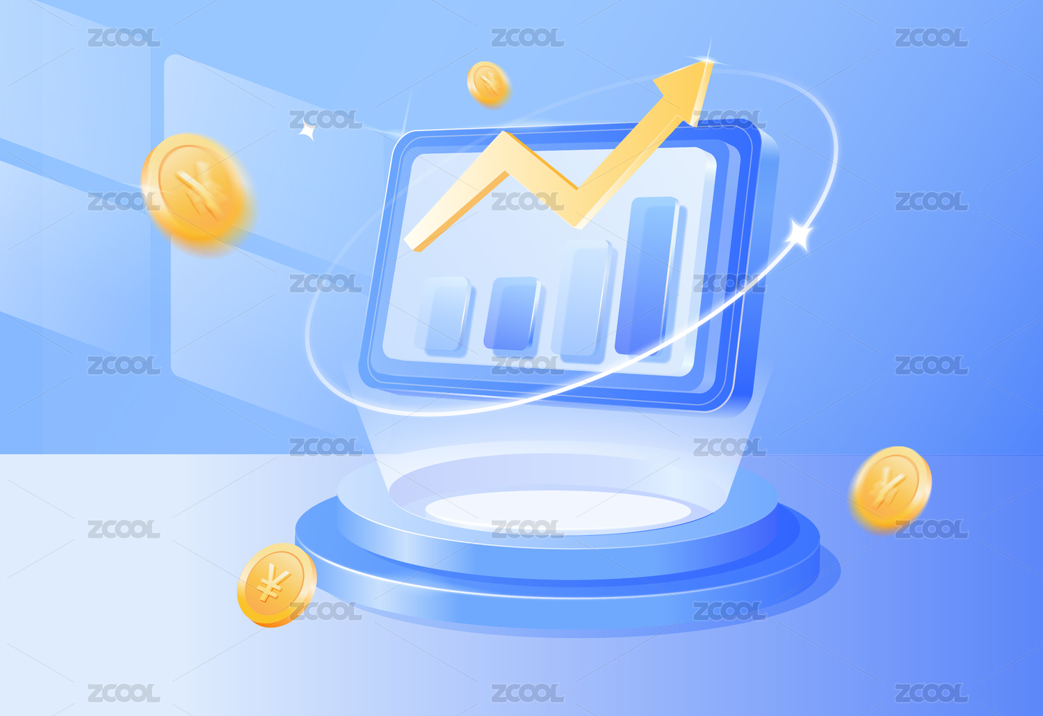 金融,投资,理财,互联网,数据增长,图表,3D,蓝色,金色,科技
