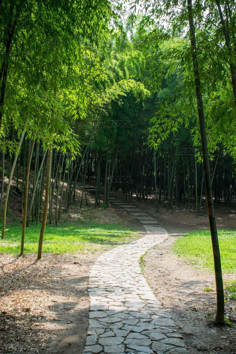 湖南郴州市资兴小东江边晨曦中竹的林小道