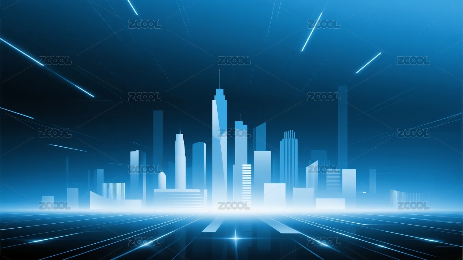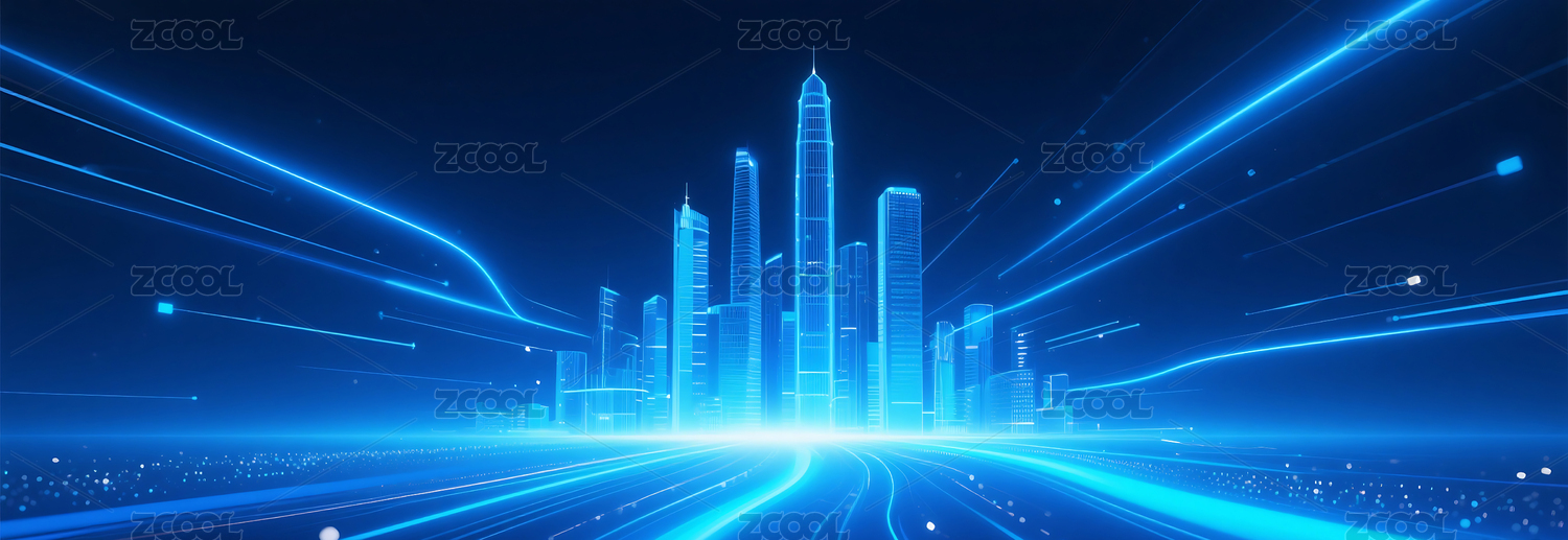 蓝色城市建筑光线光线主视觉背景