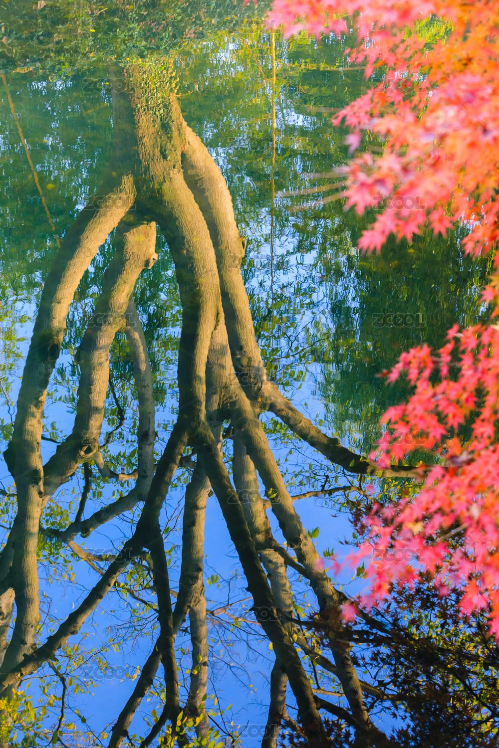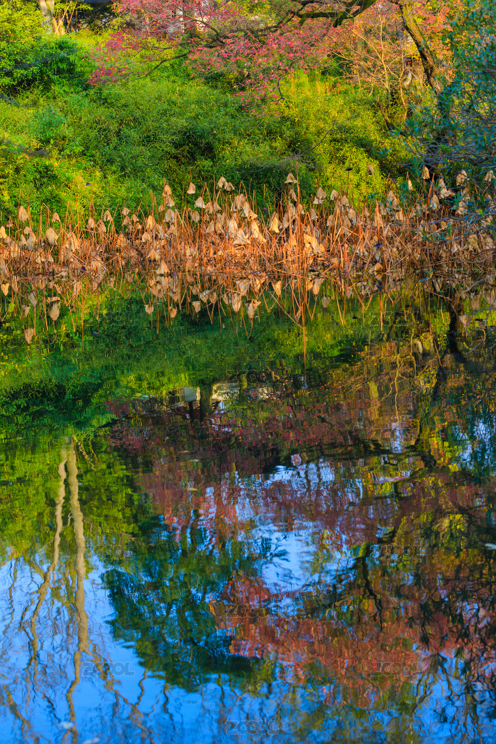 春天植物湖面倒影