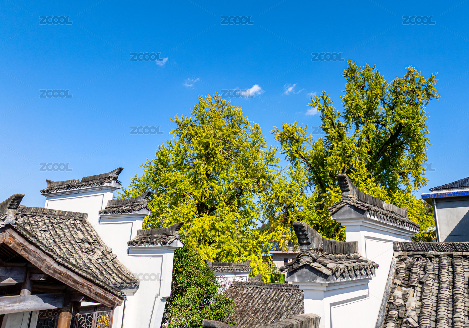 江苏省无锡市惠山古镇住宅房屋和银杏树风光