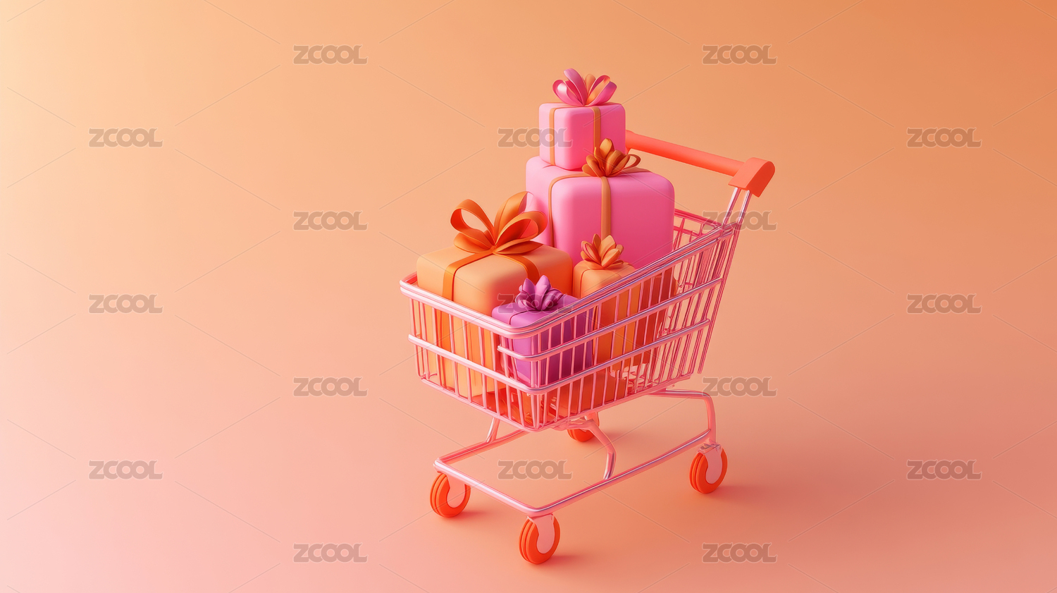 粉色购物车与礼物
