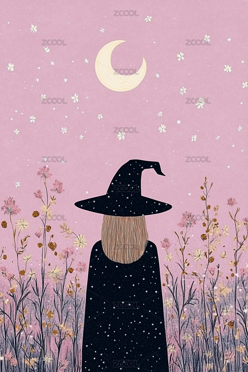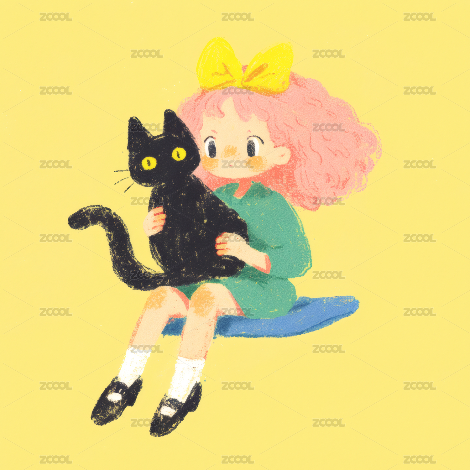 女巫,小女巫,黑猫,魔女,小魔女,插画,插图,女孩,小女孩,少女