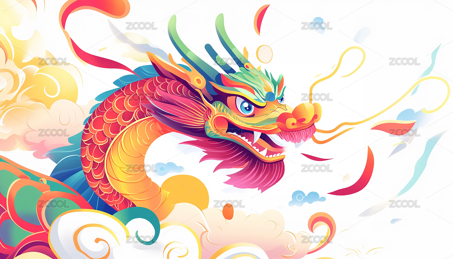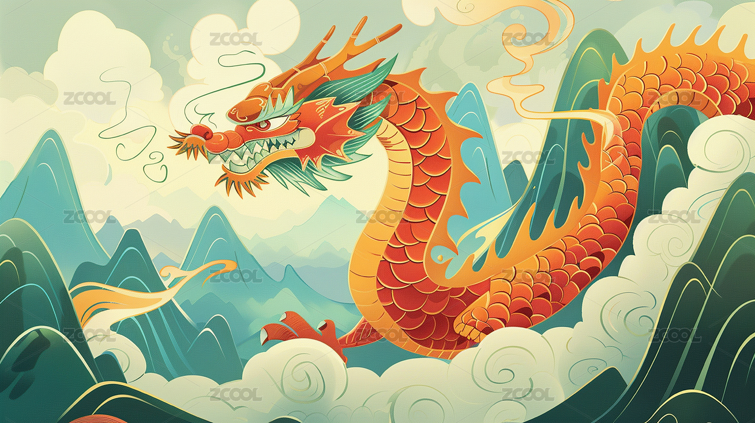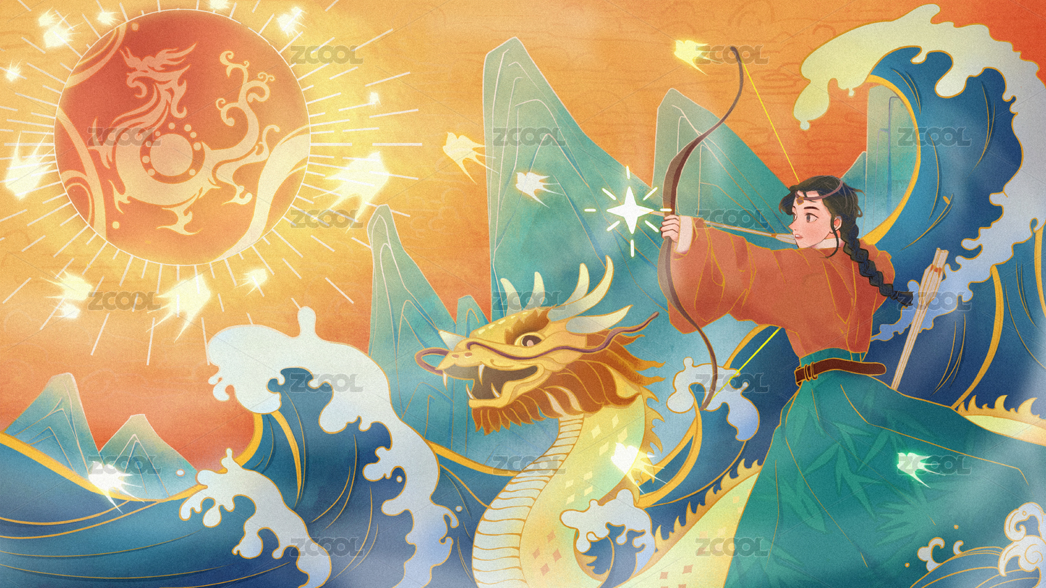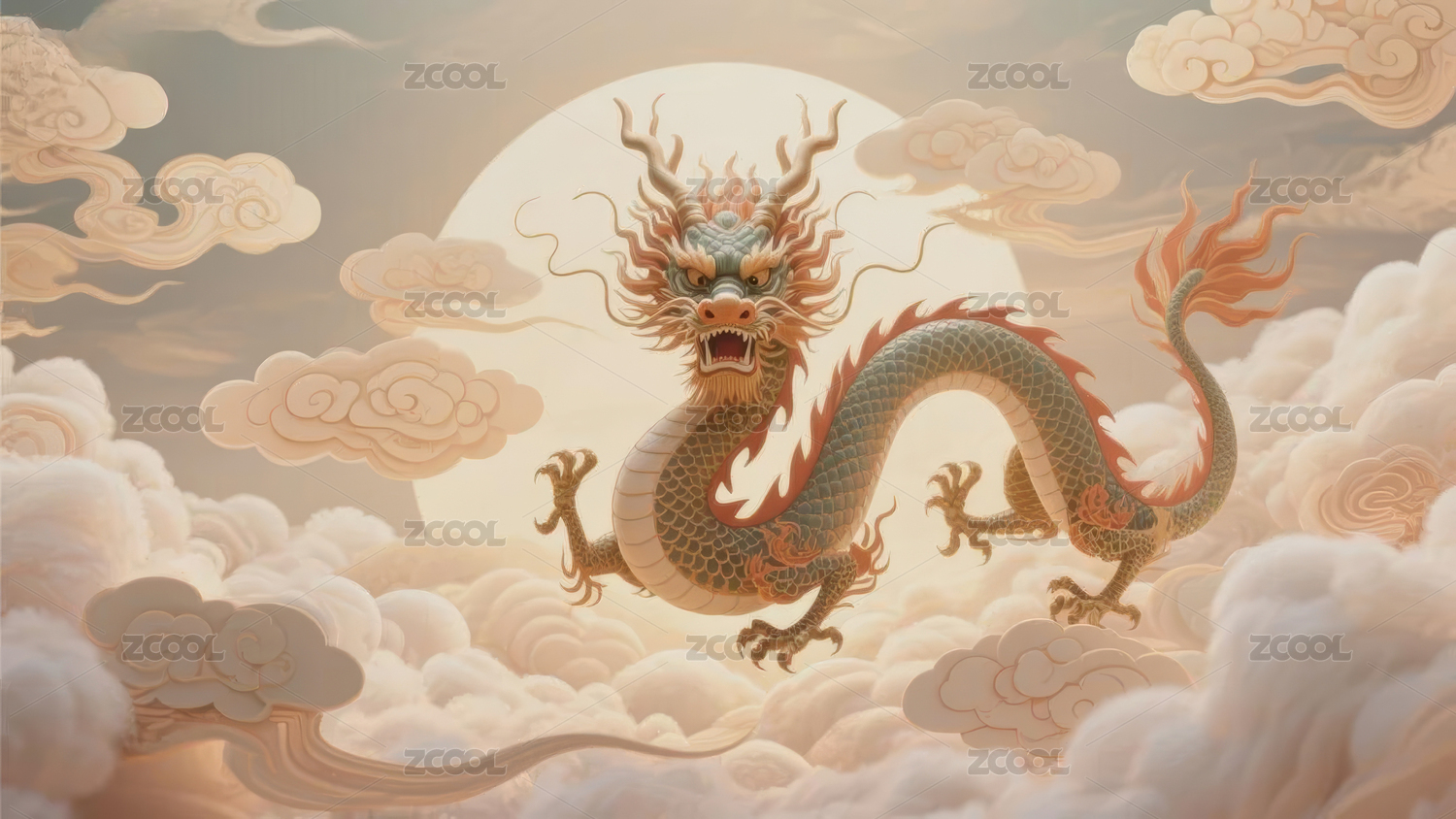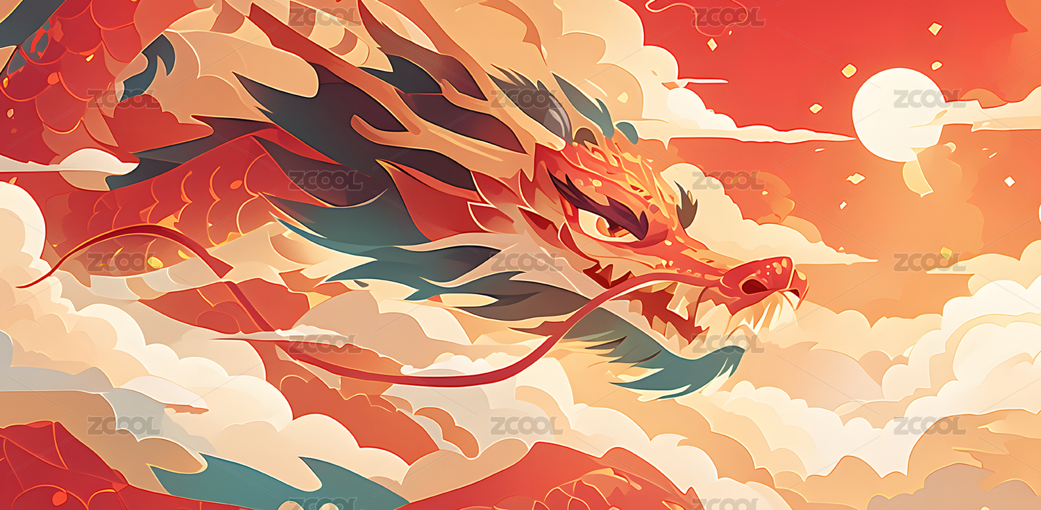 国潮,端午,龙,飞天,粽子,敦煌,国风,湖水,天空,云层