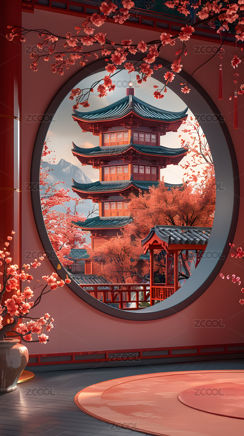 国风自然桃花粉色主题奇幻空间产品展示展台