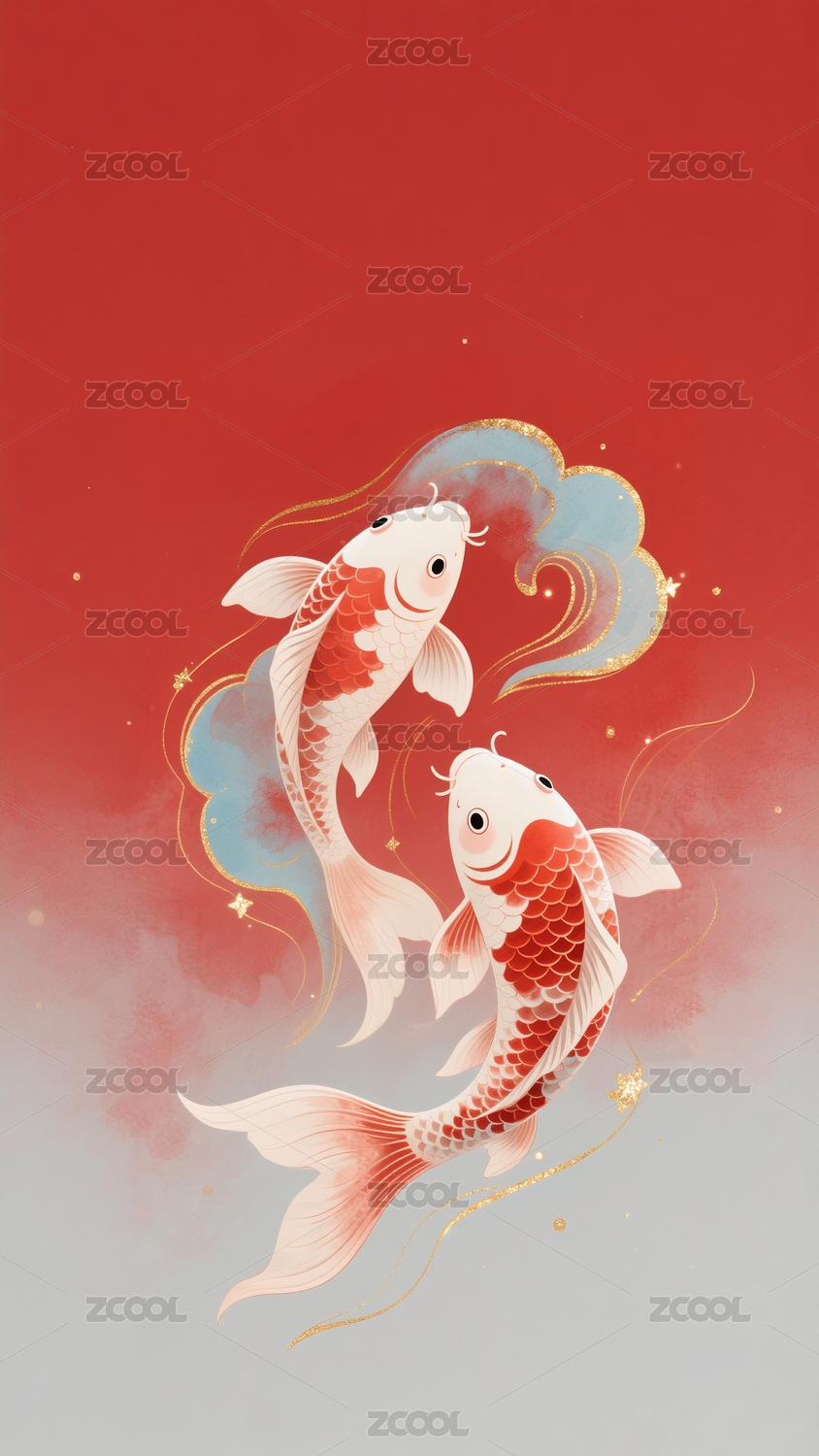 中式吉祥锦鲤贺岁喜庆插画