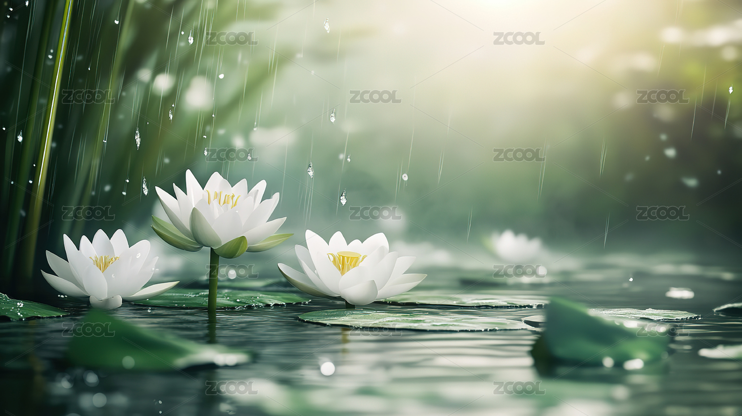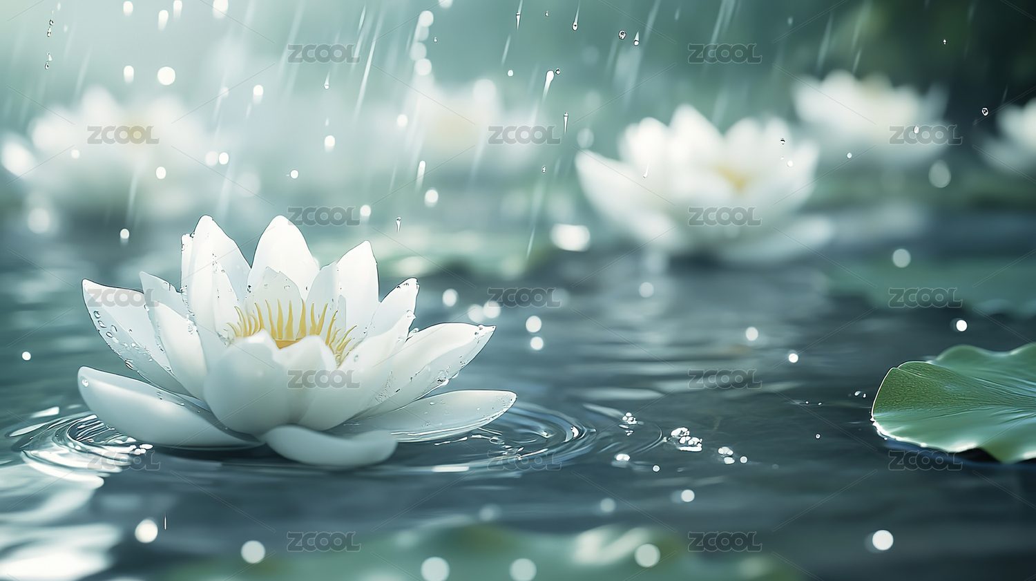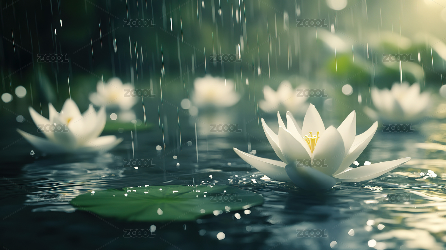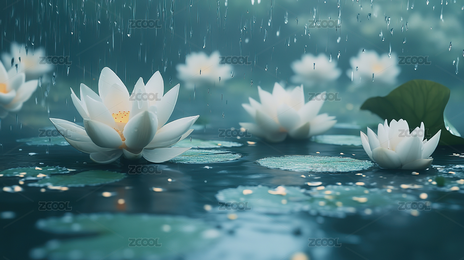 高清,壁纸,背景,唯美,3D,自然,莲花,花朵,宁静,雨