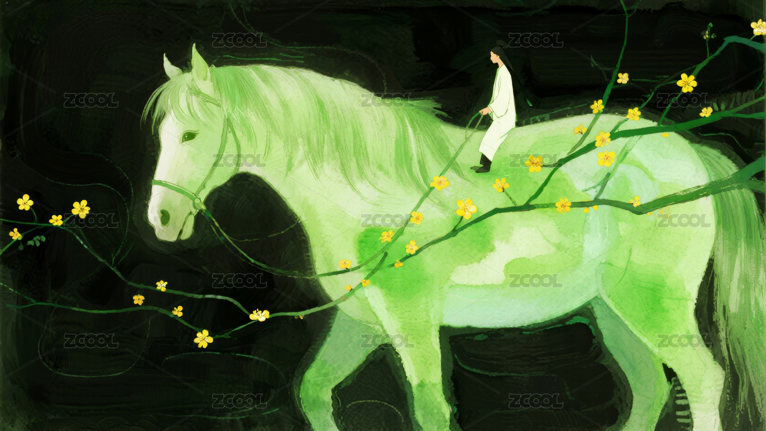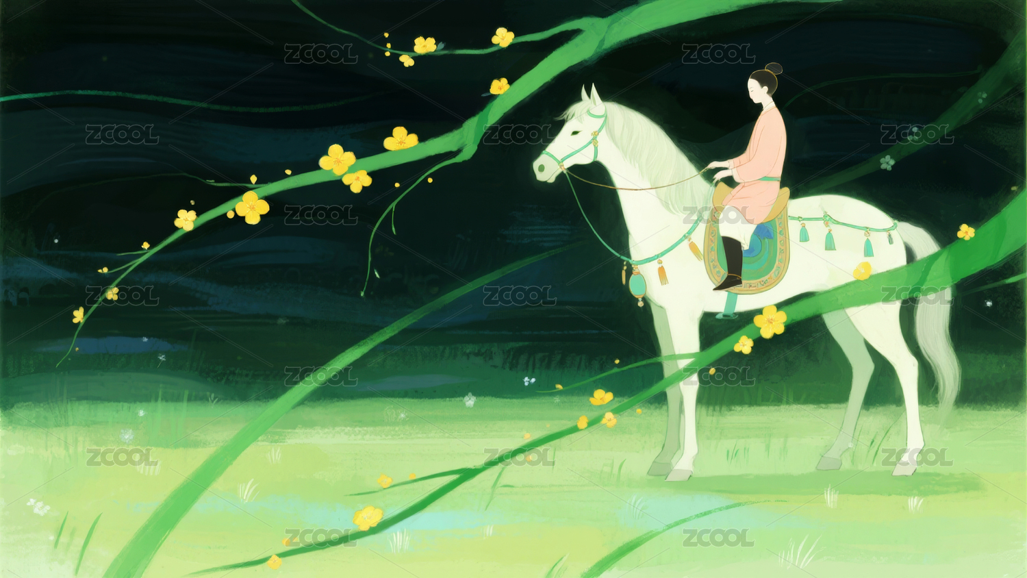 古风,水彩,春天,鲜花,白马,骑马,书生,武侠,潇洒,踏花