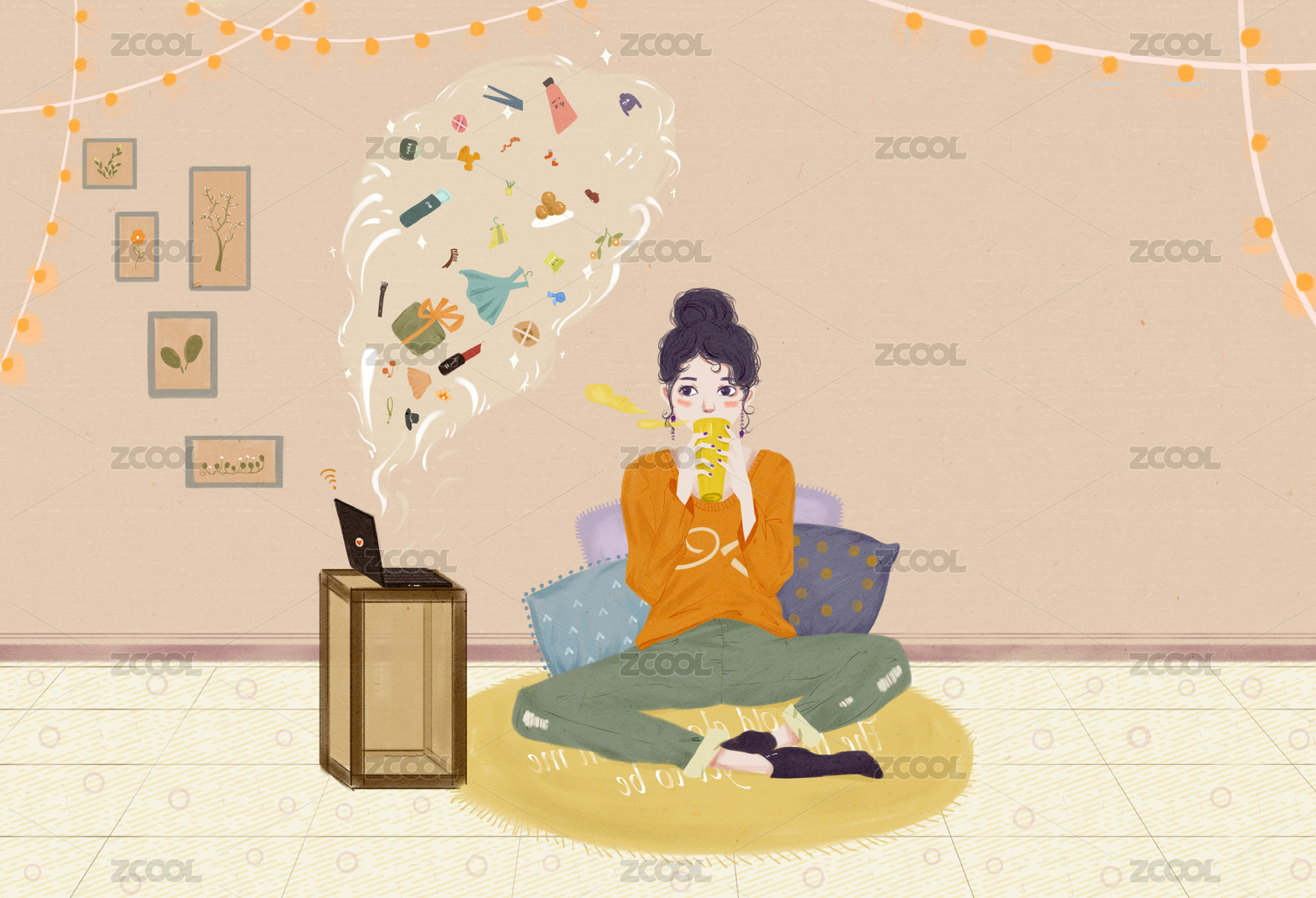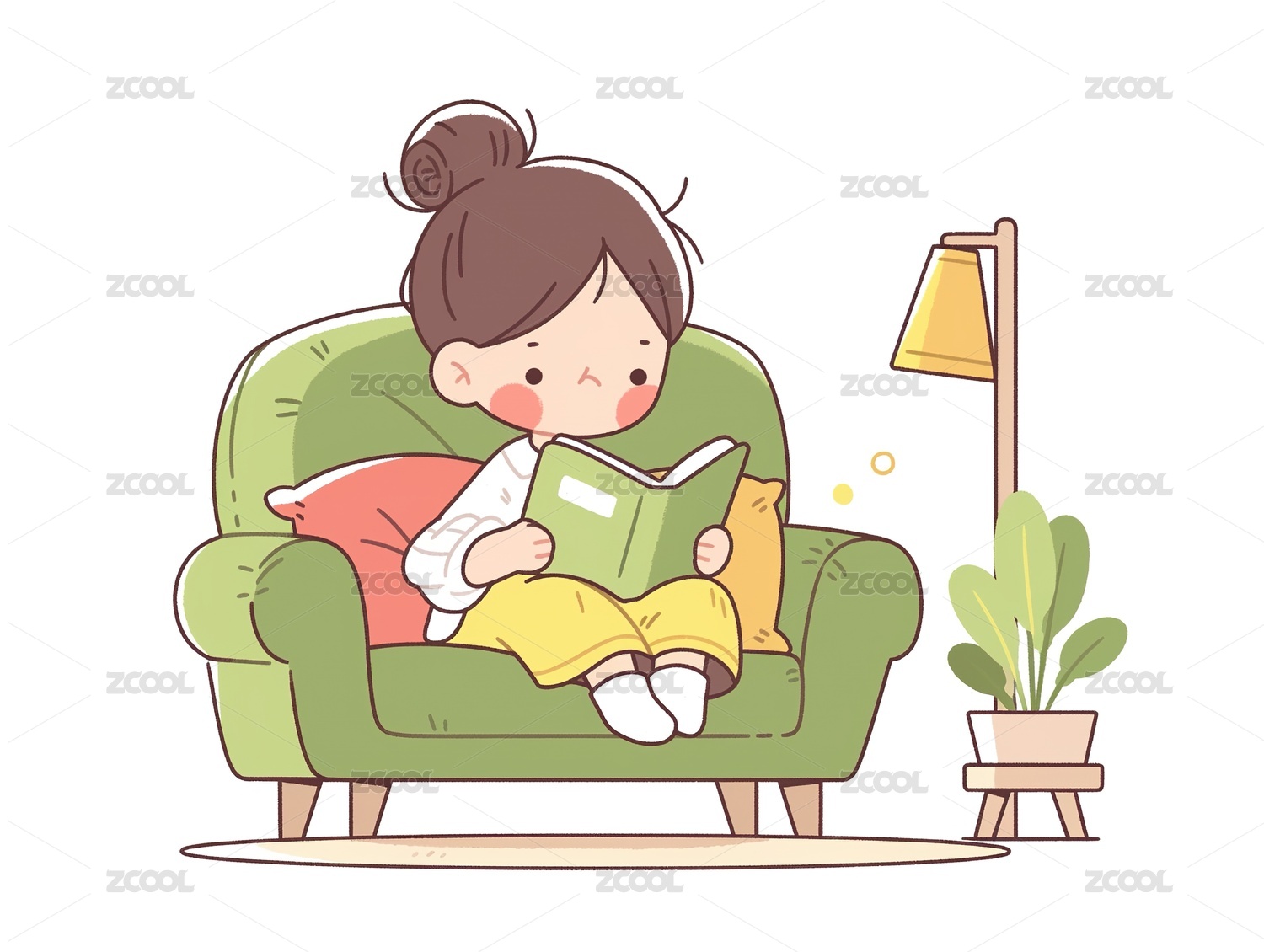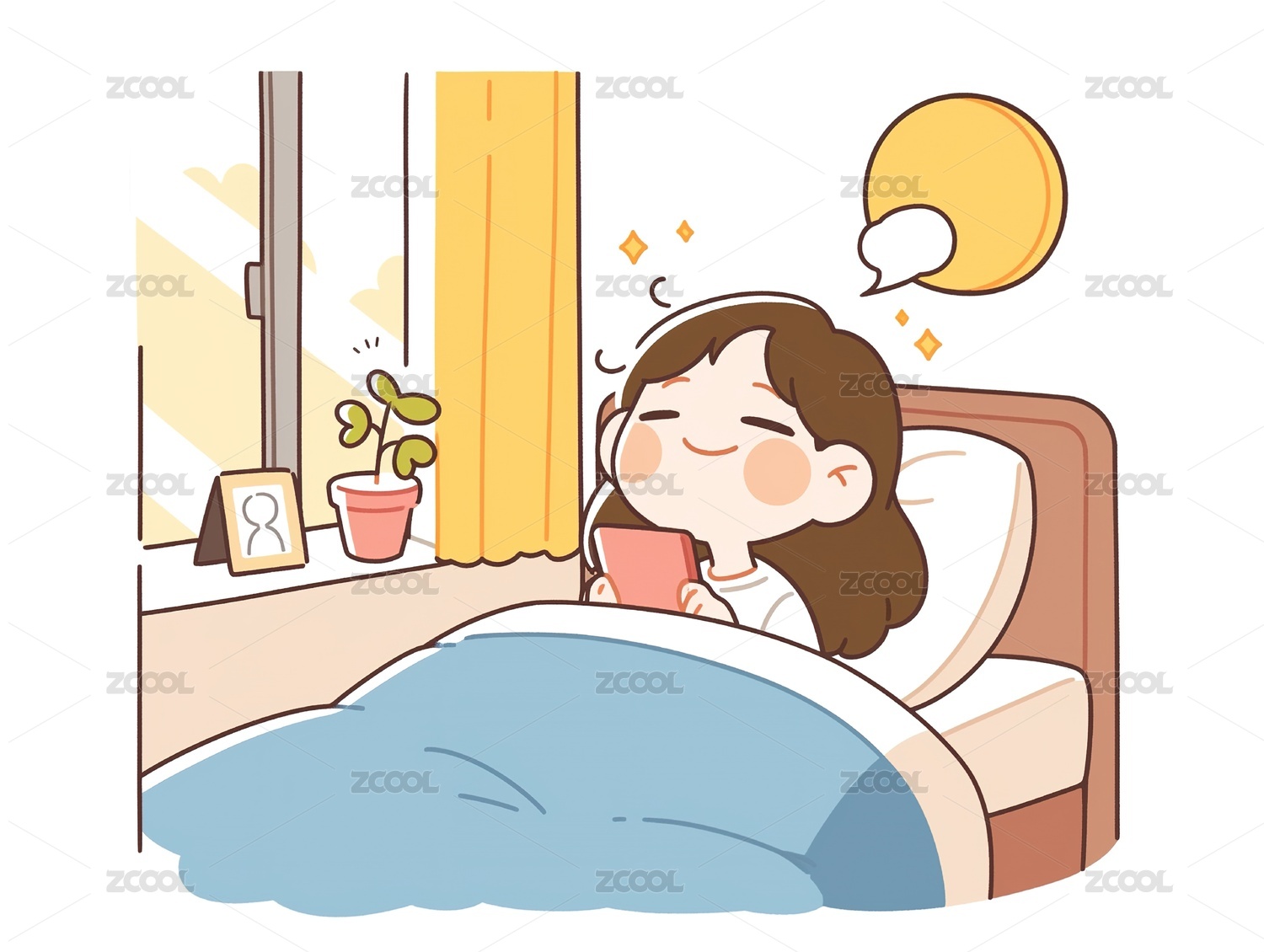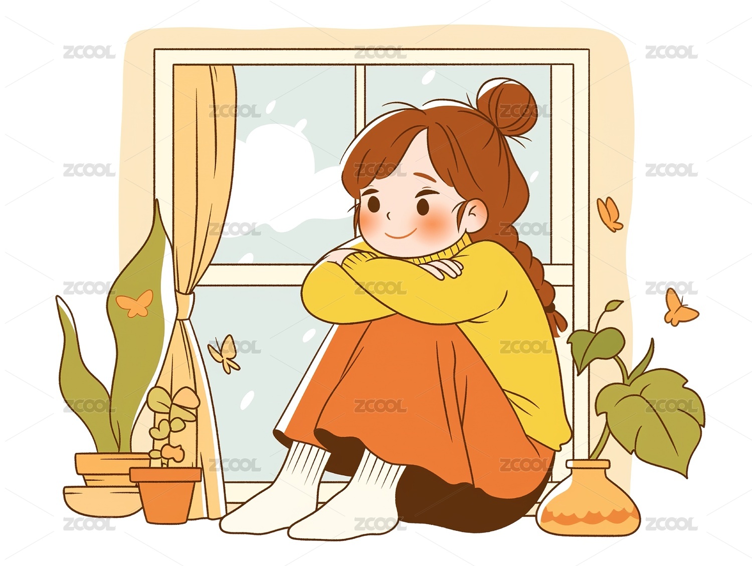 插画,治愈,描边,简笔画,手绘,人,生活,可爱的,清新,女孩